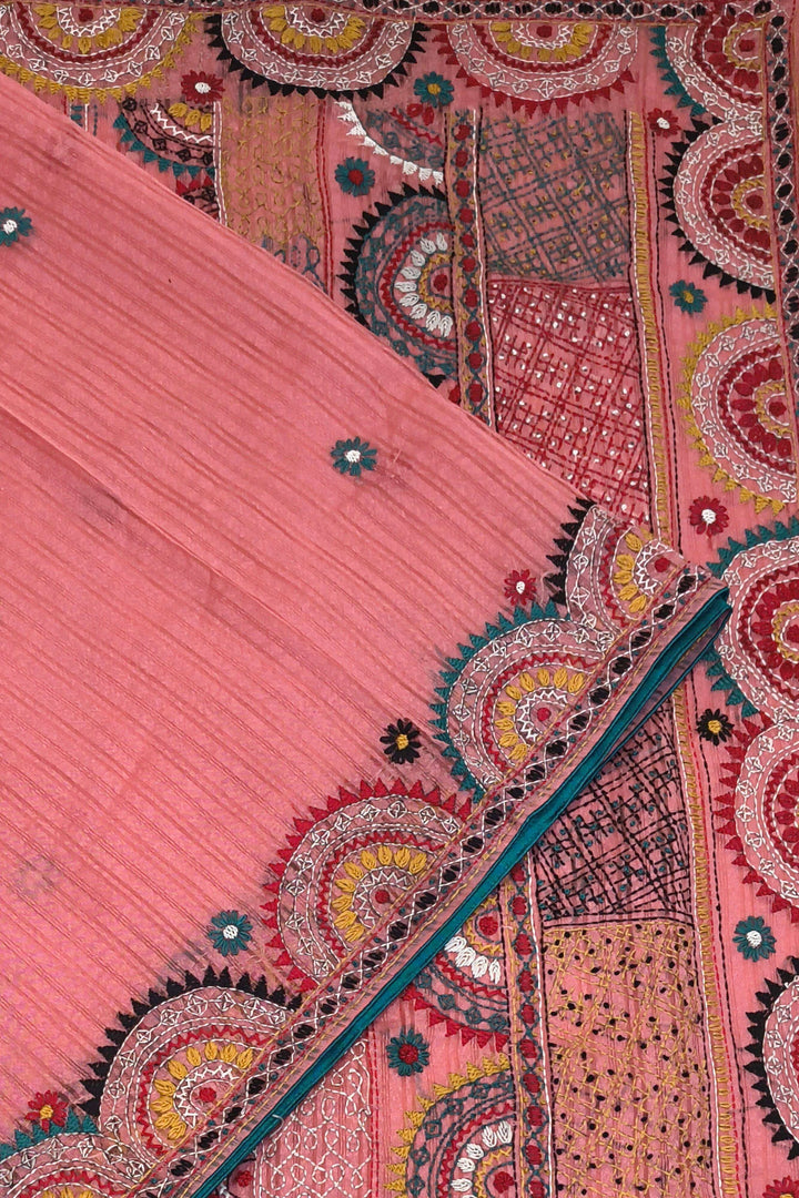Description : Lambani hand embroidery on a chanderi saree in peach
