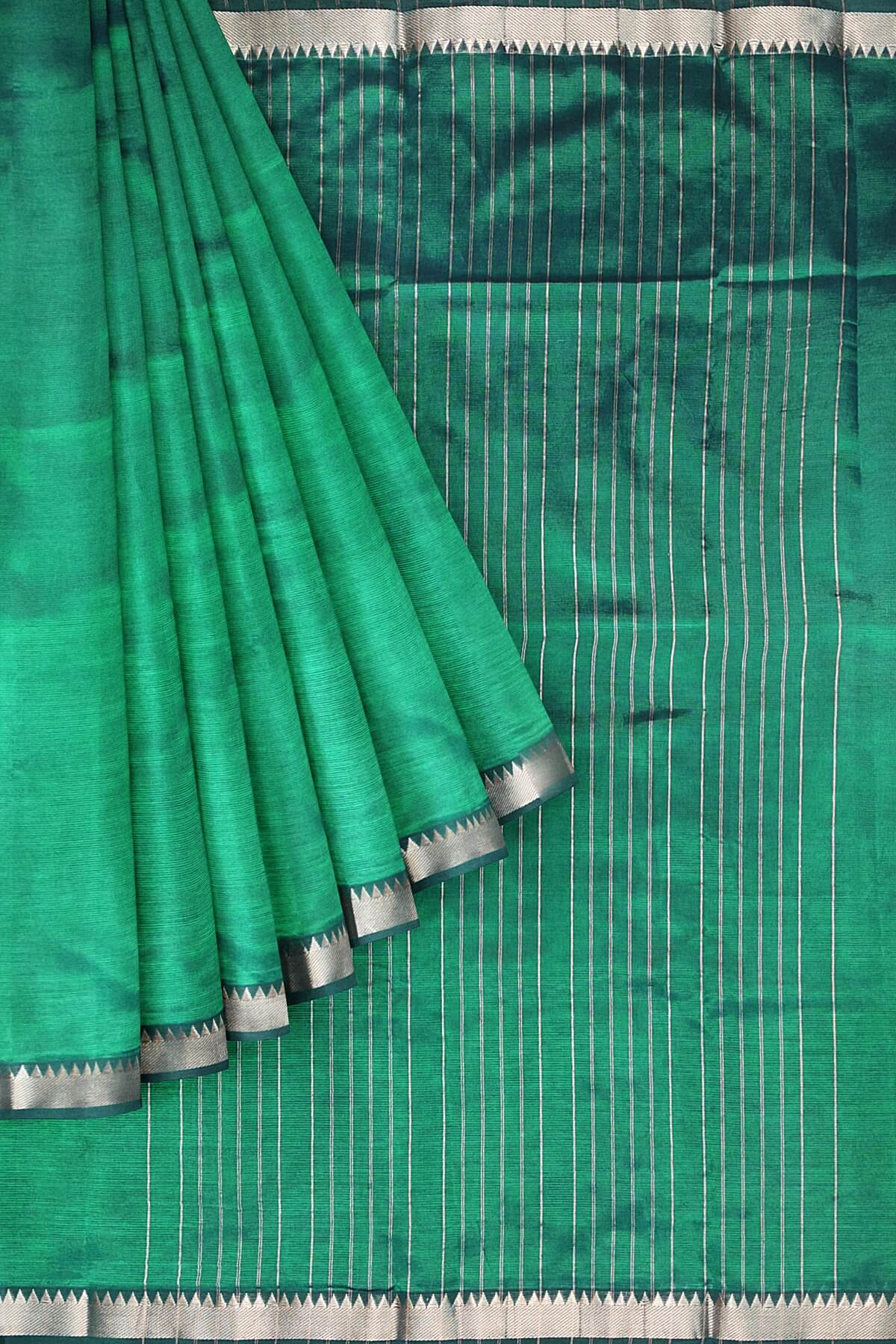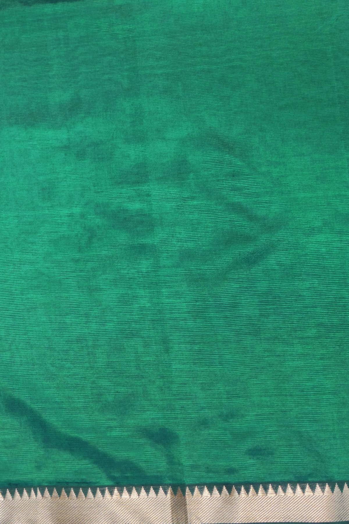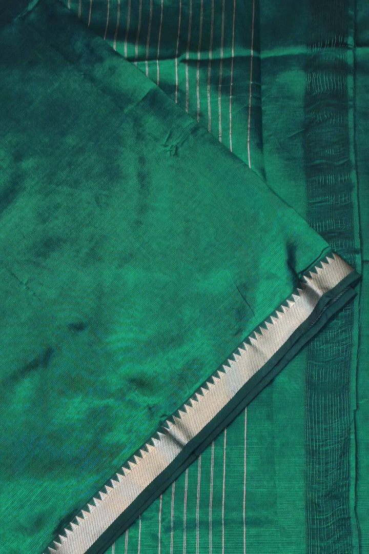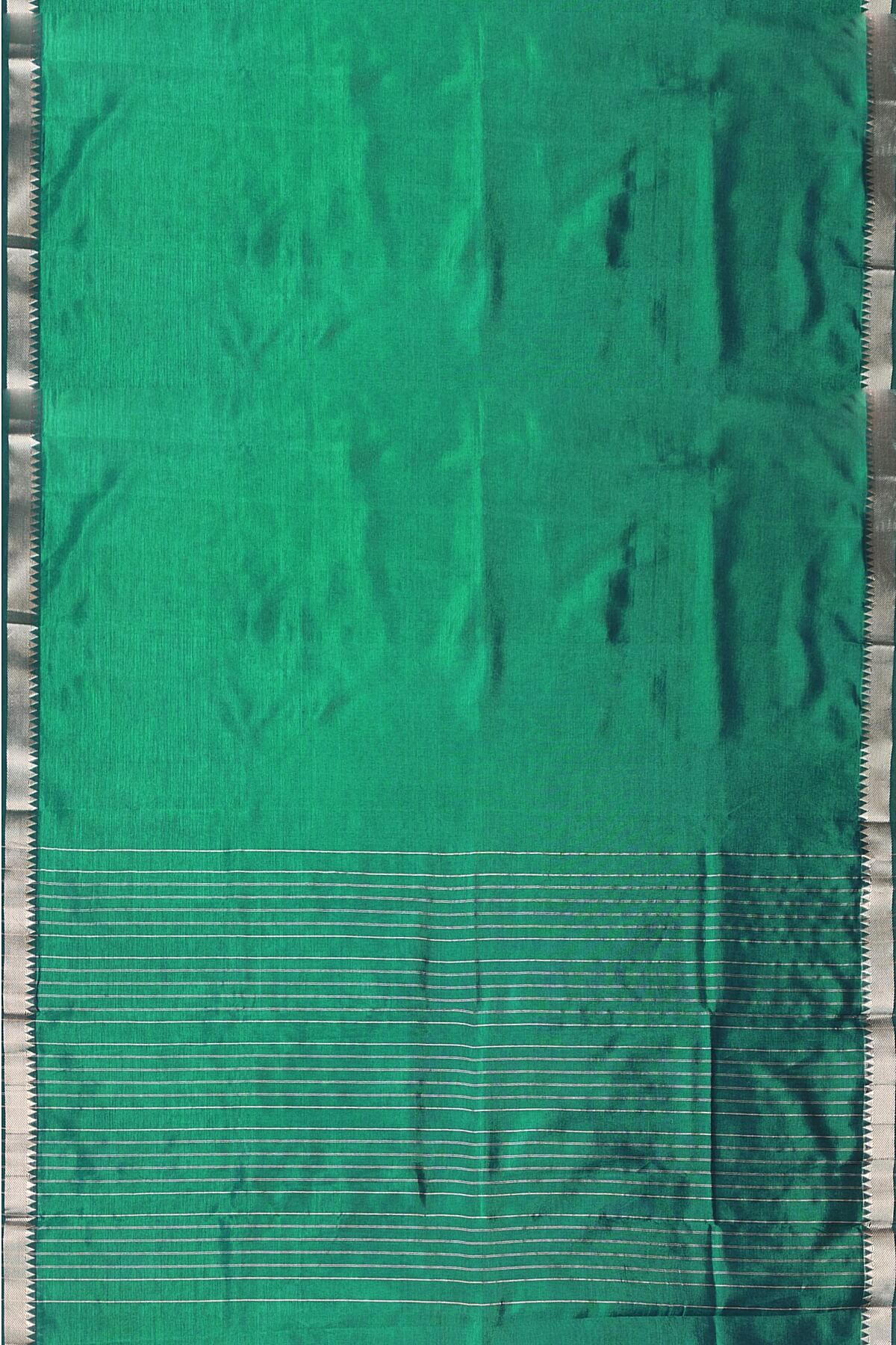 Description: Mangalgiri silk cotton saree in peacock green with silver border