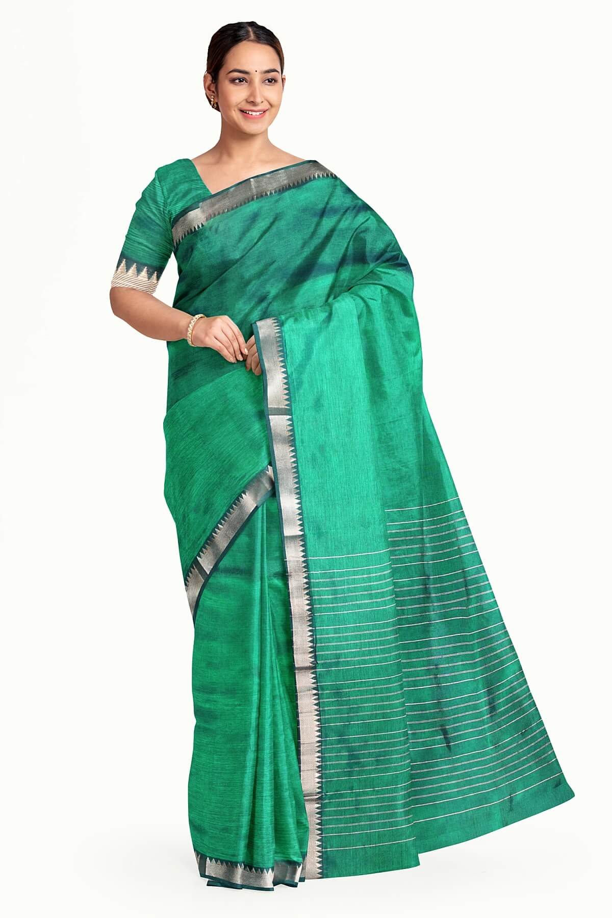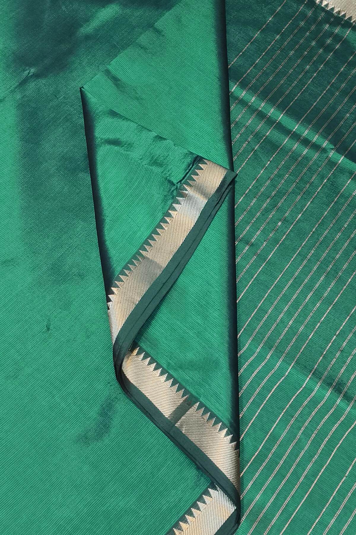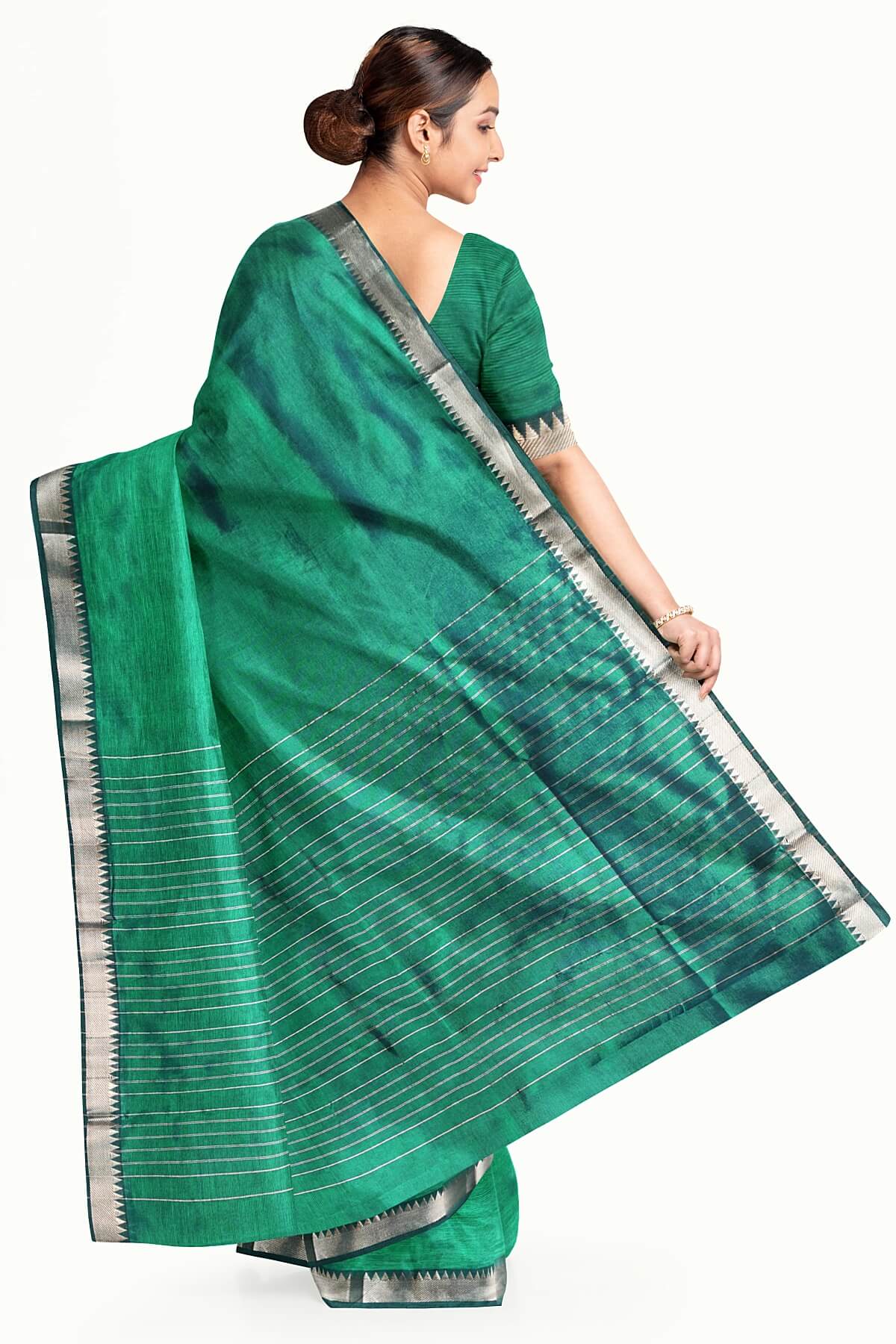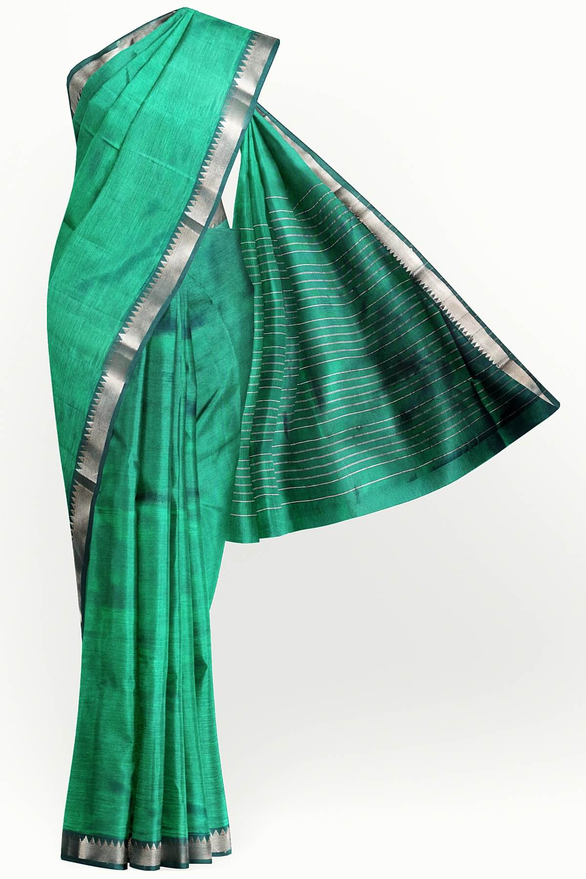 Description: Mangalgiri silk cotton saree in peacock green with silver border