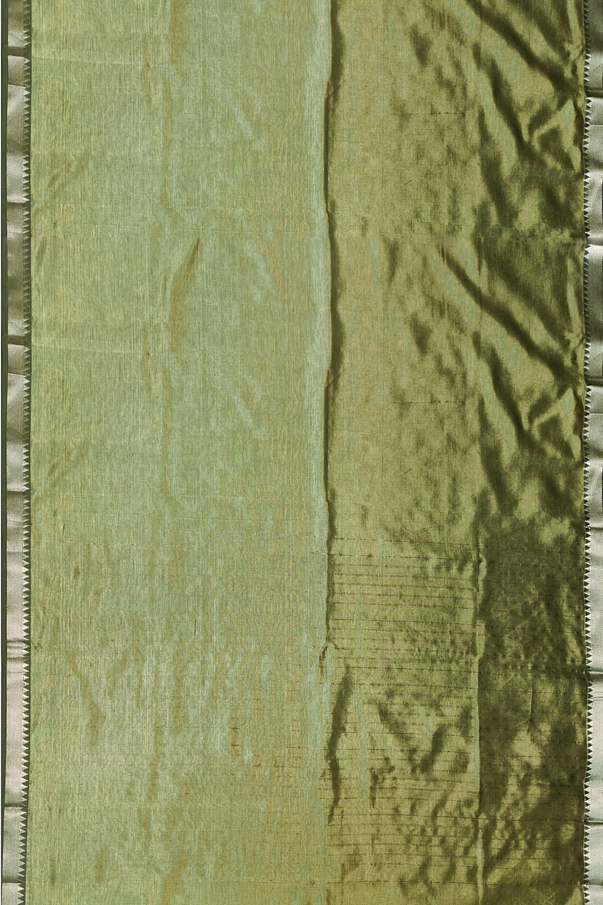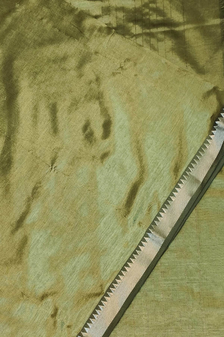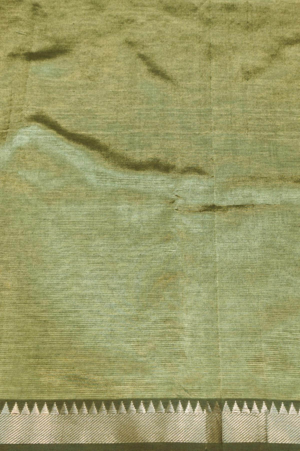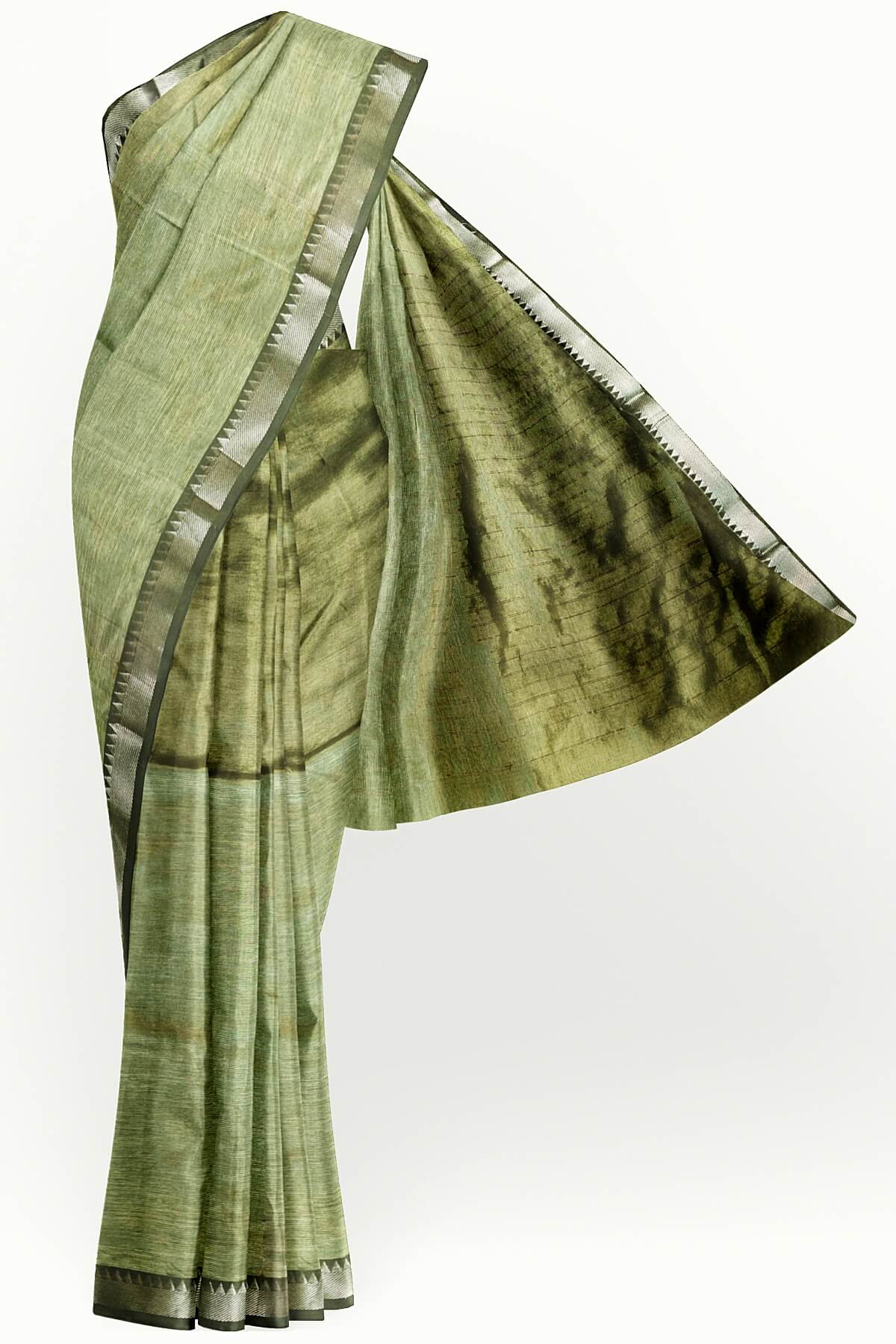 Description: Mangalgiri silk cotton saree in sage green with silver border