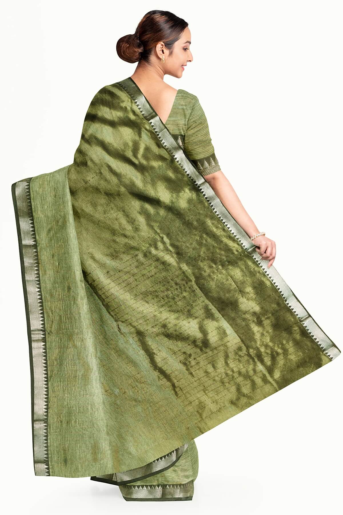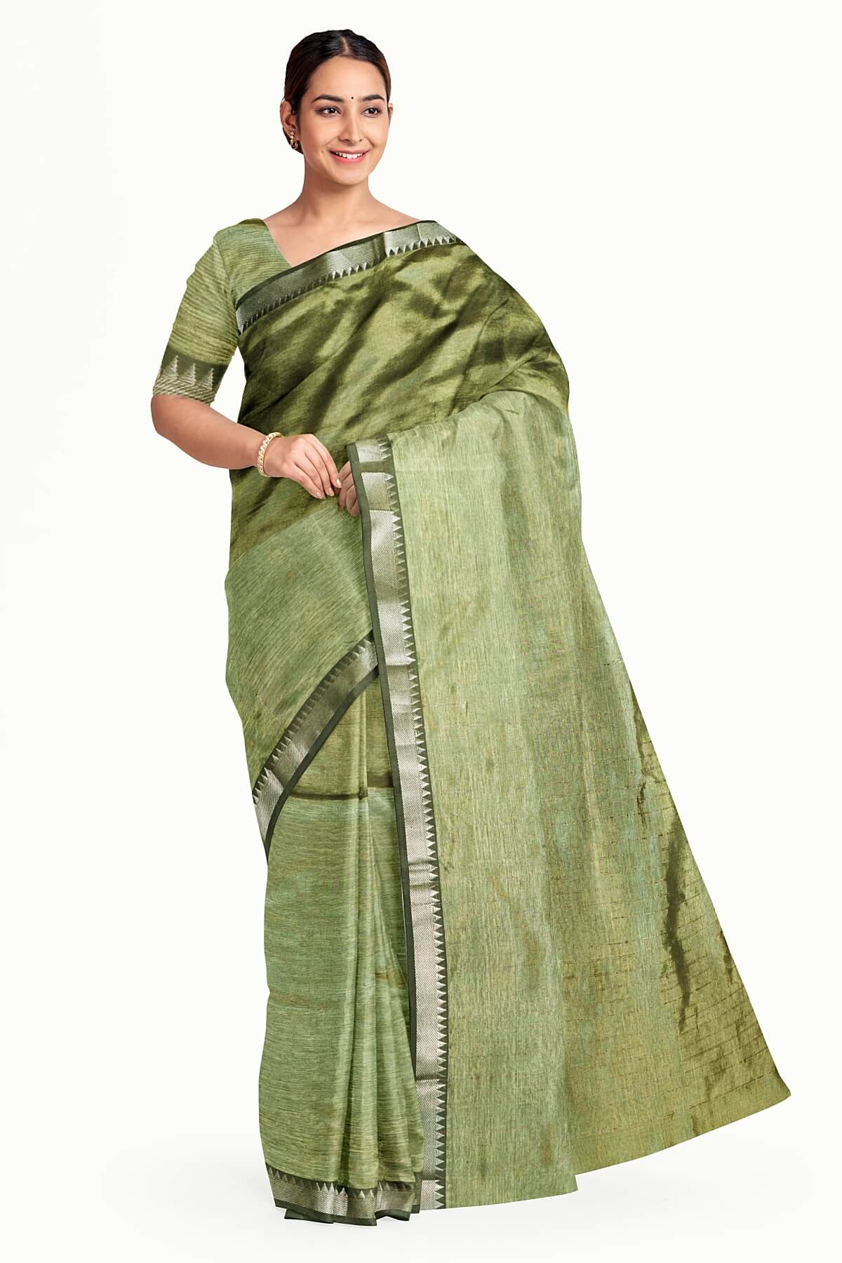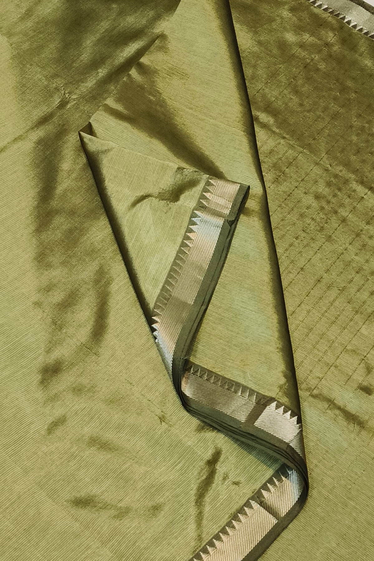 Description: Mangalgiri silk cotton saree in sage green with silver border
