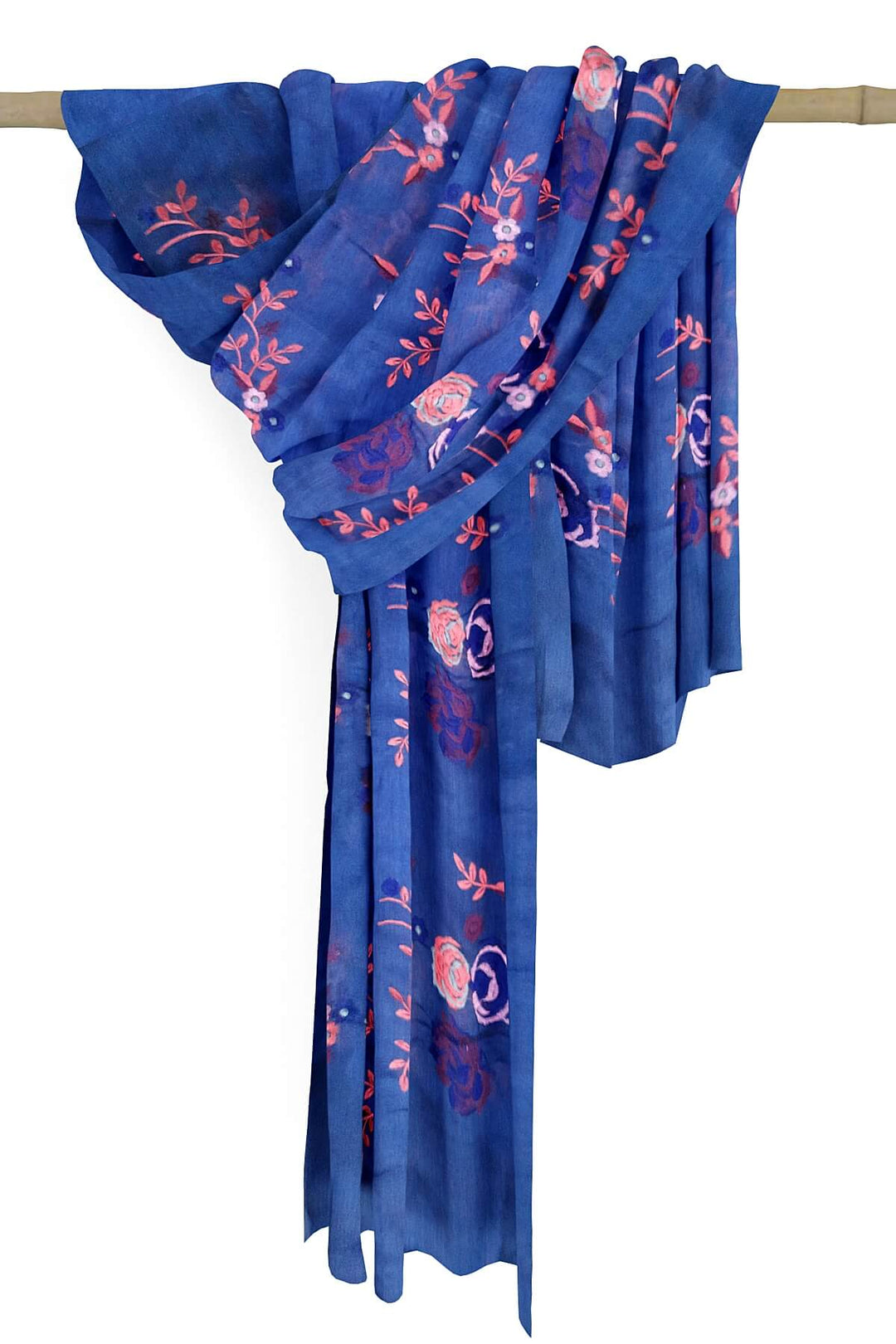 Handloom tussar pure silk dupatta in blue with floral embroidery work