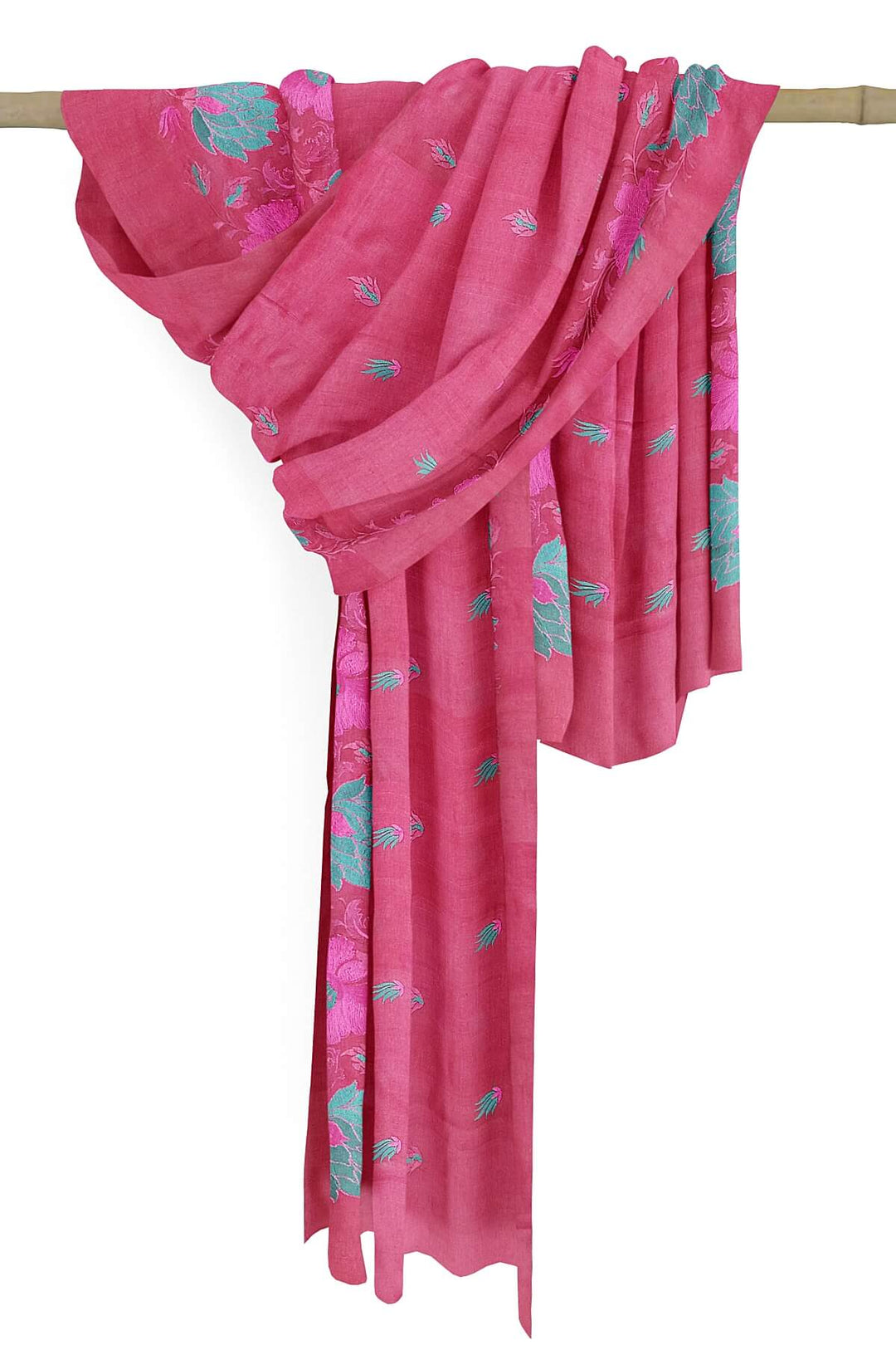 Handloom tussar pure silk dupatta in onion pink with floral embroidery work
