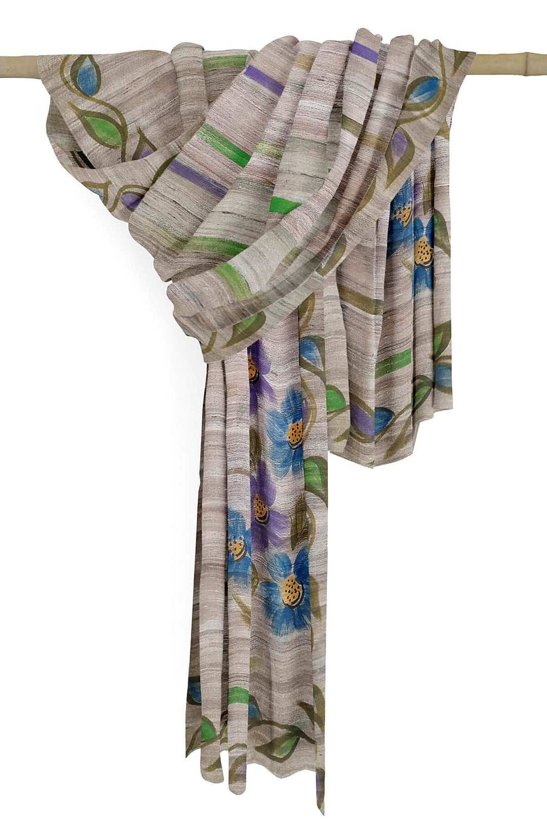 Handloom tussar pure silk dupatta with hand painted floral pattern