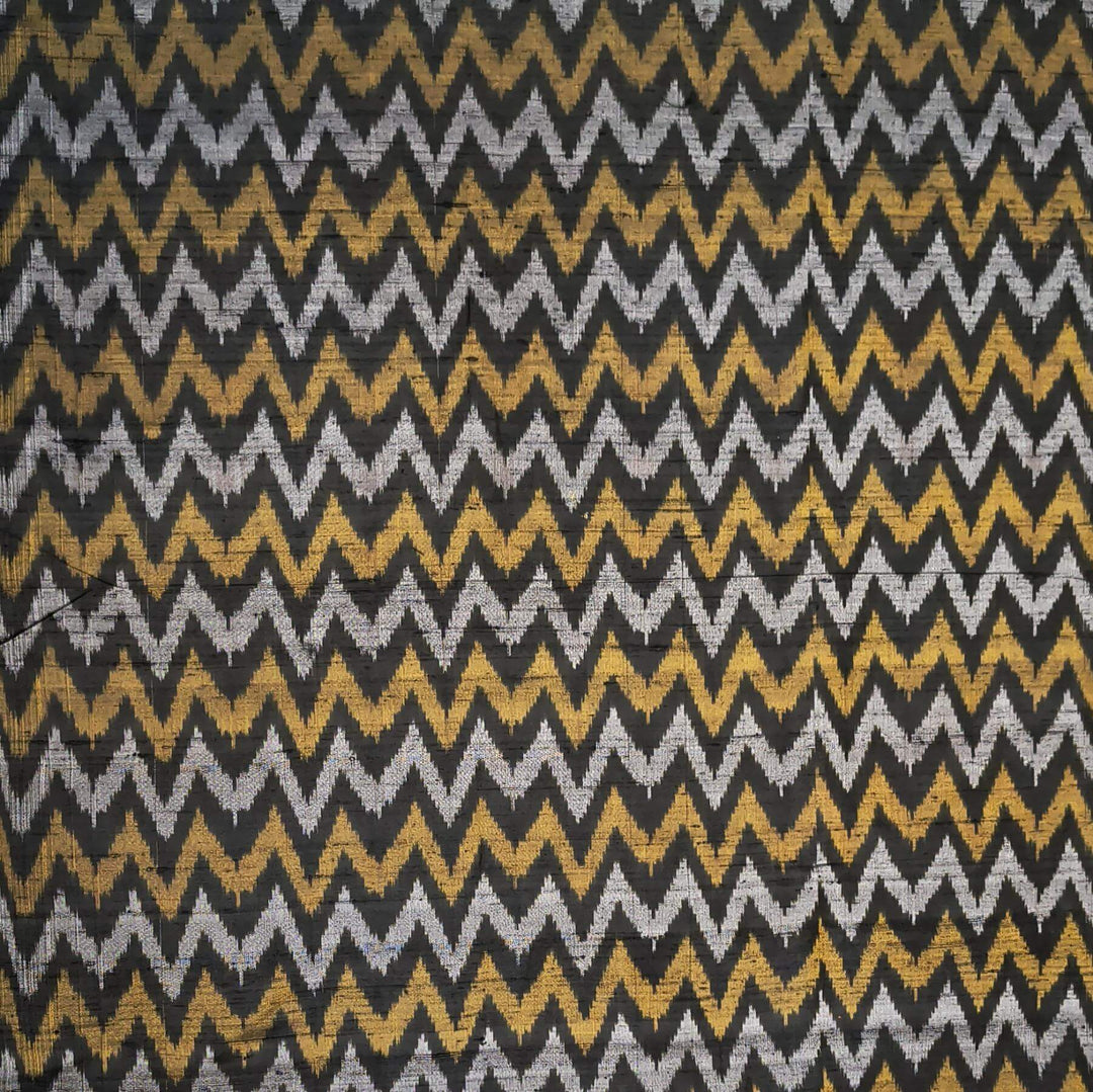 Handwoven Ikat pure silk fabric in black in zig zag pattern in dupion finish