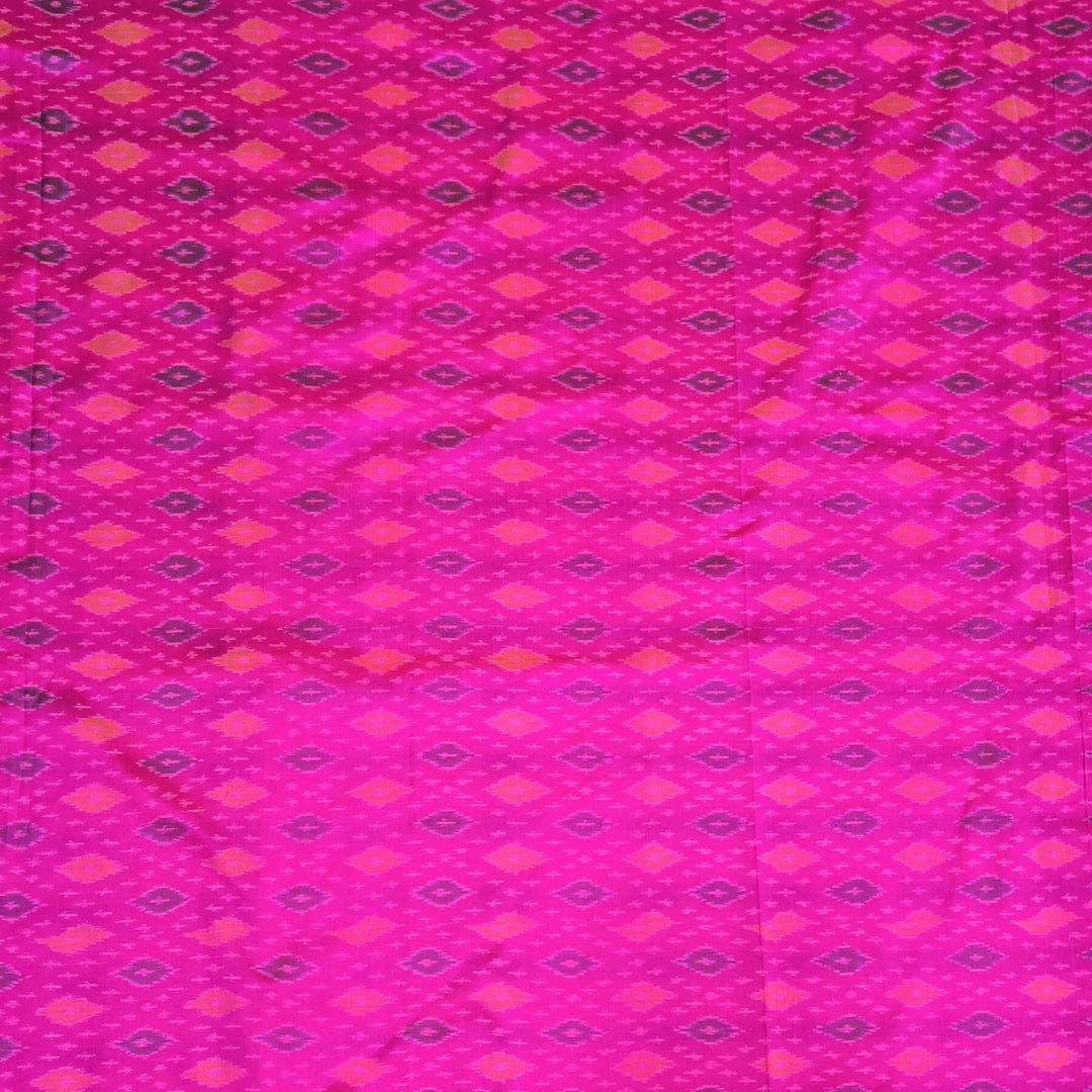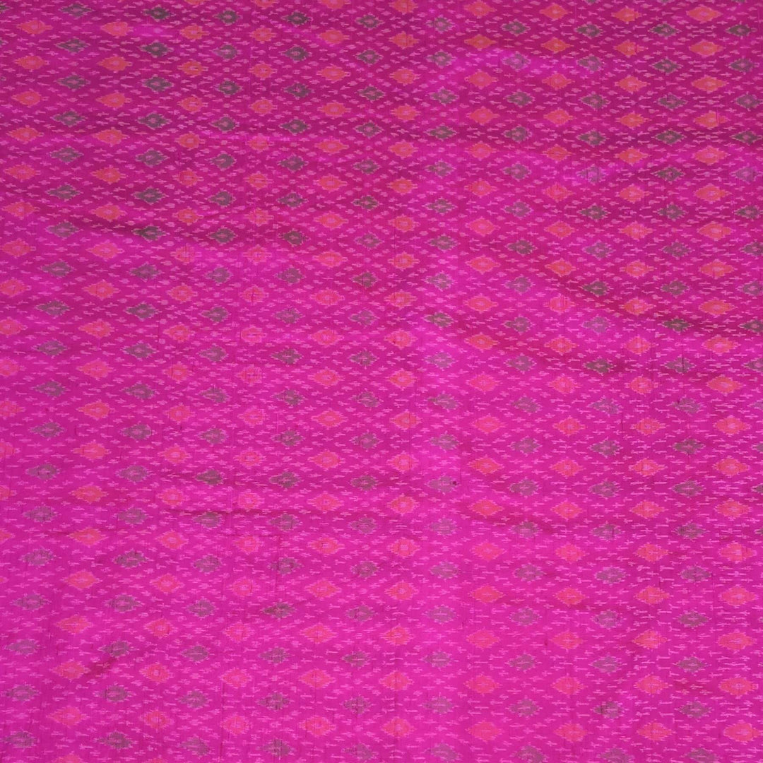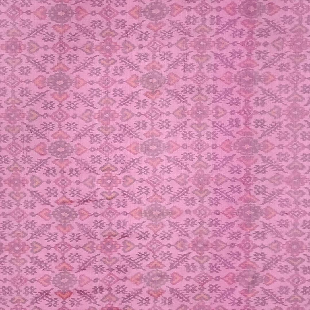 Handwoven Ikkat pure silk fabric in dupioni finish in pink.