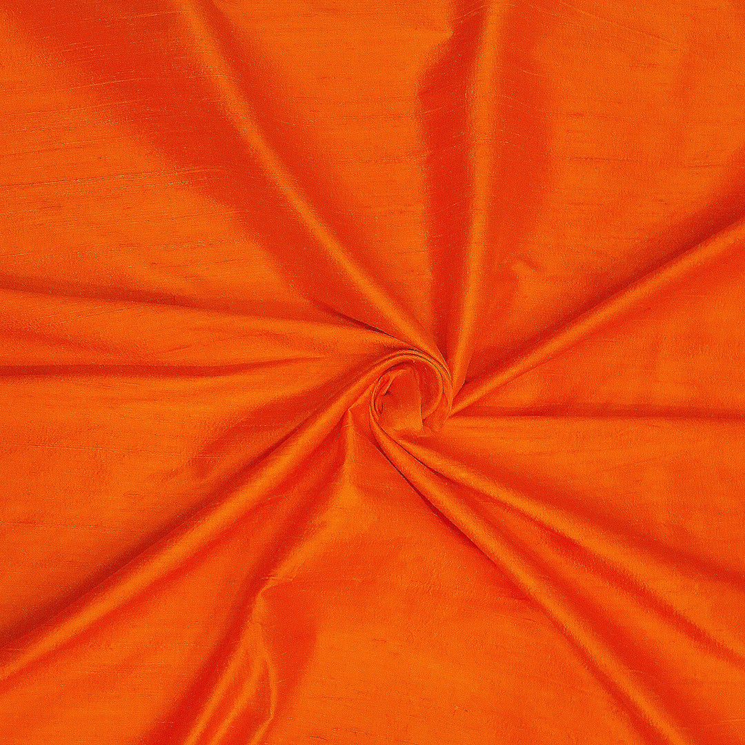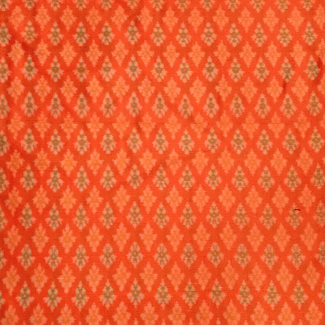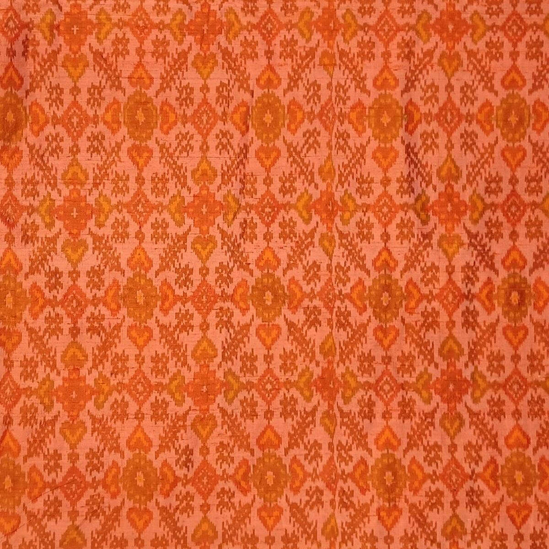 Handwoven Ikat pure silk fabric in orange in dupion finish