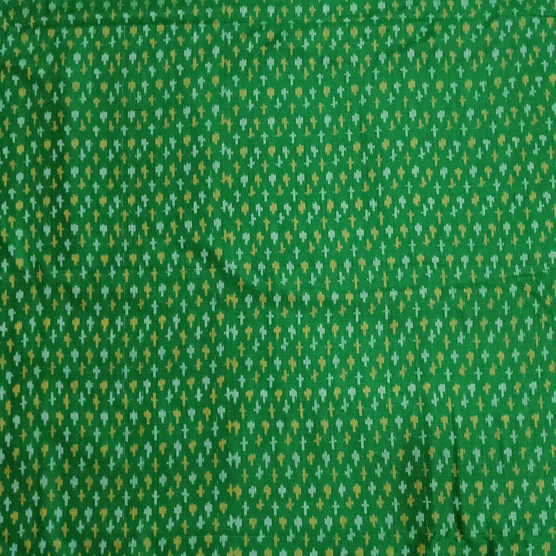 Handwoven Ikkat pure silk fabric in dupioni finish in green