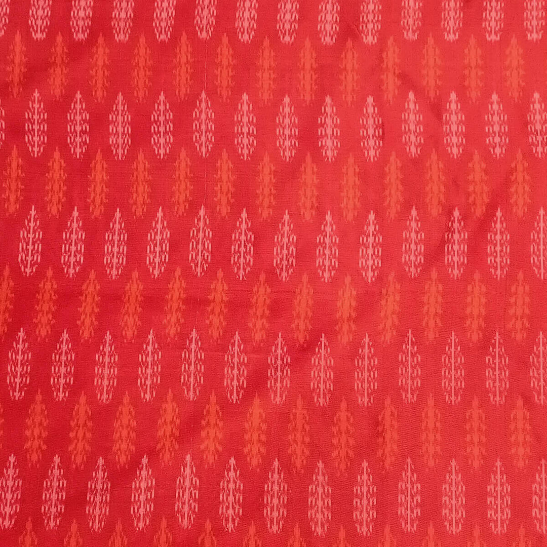 Handwoven Ikat pure silk fabric in red in fern leaf pattern