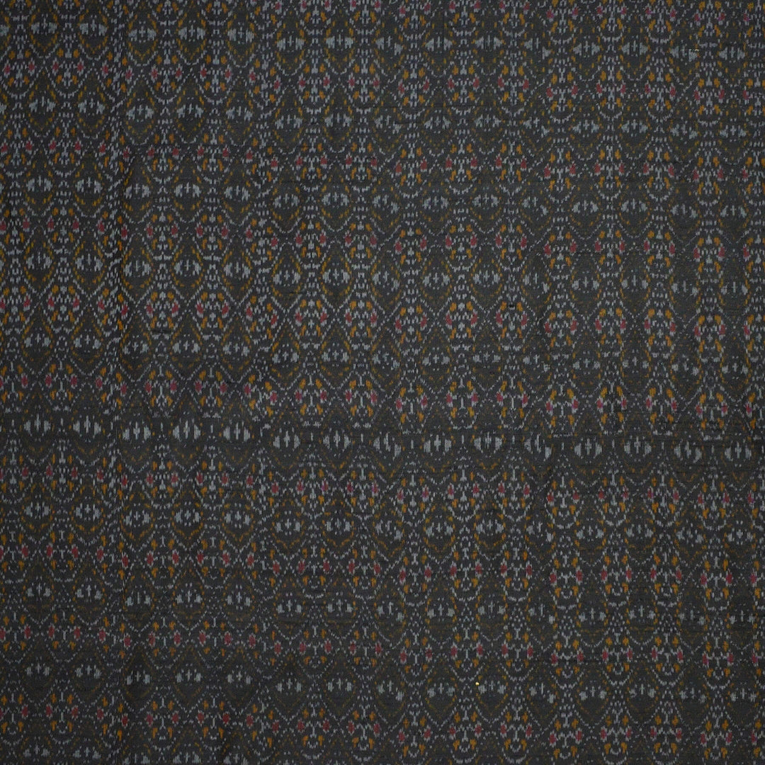 Handwoven Ikkat pure silk fabric in dupioni finish in black.