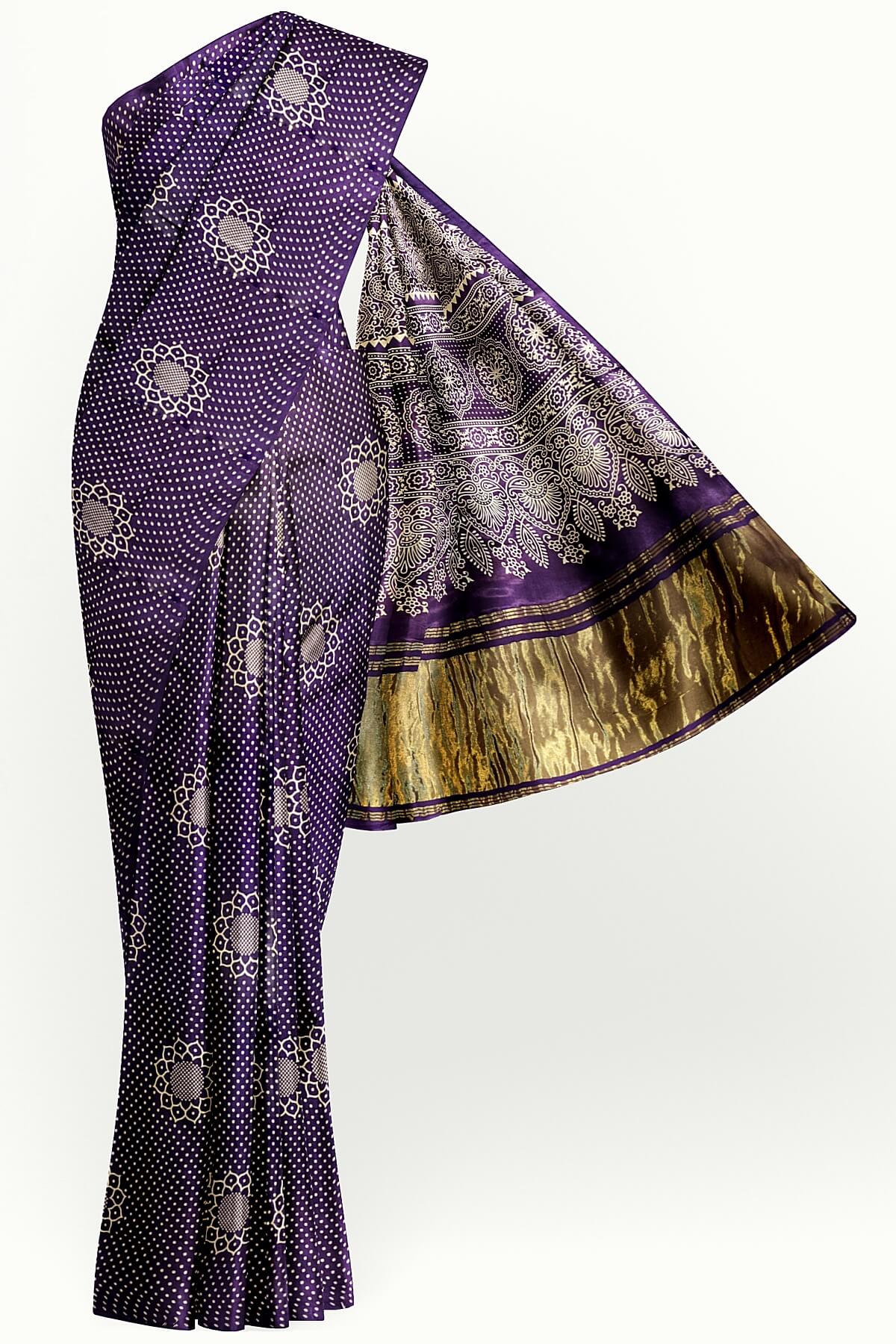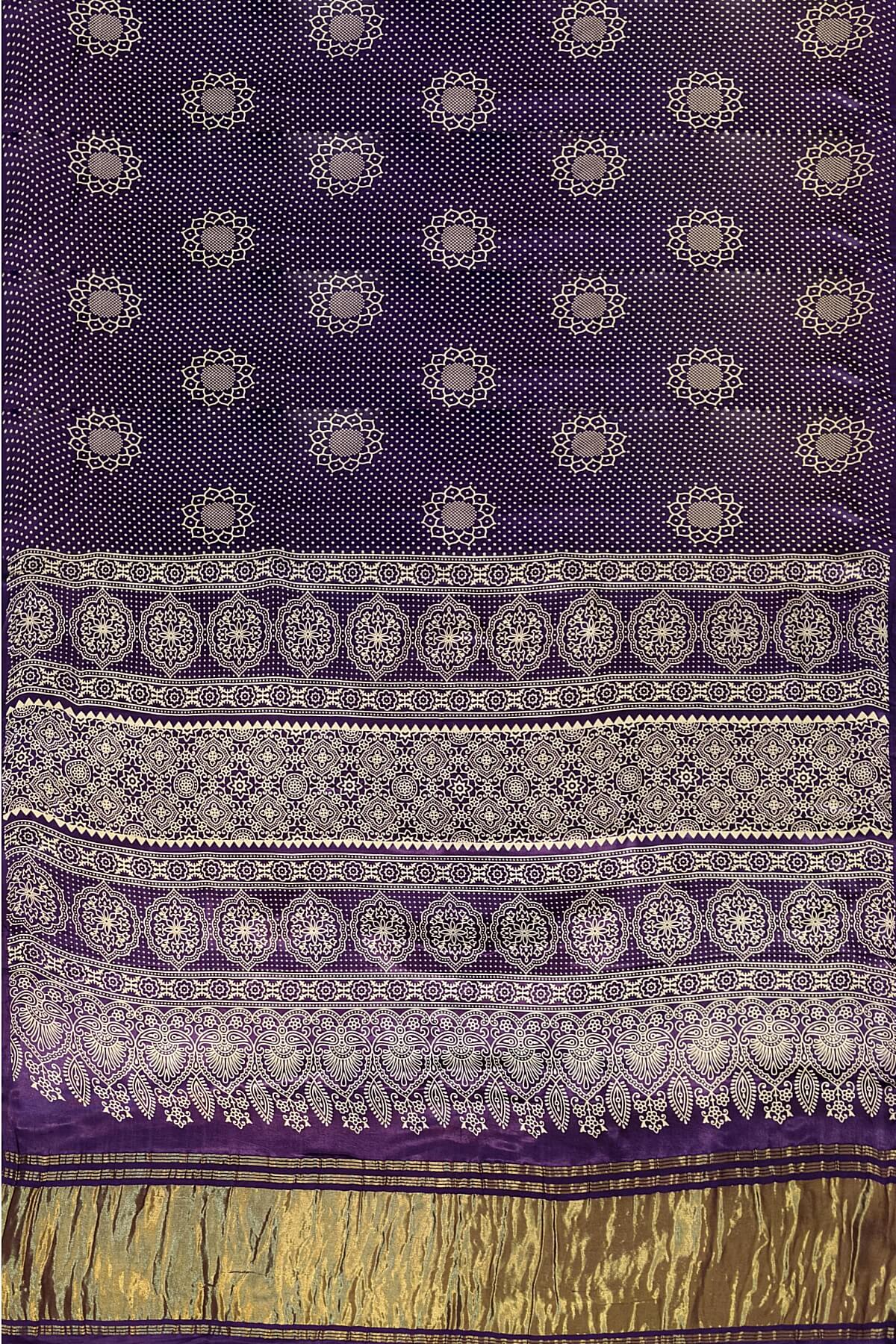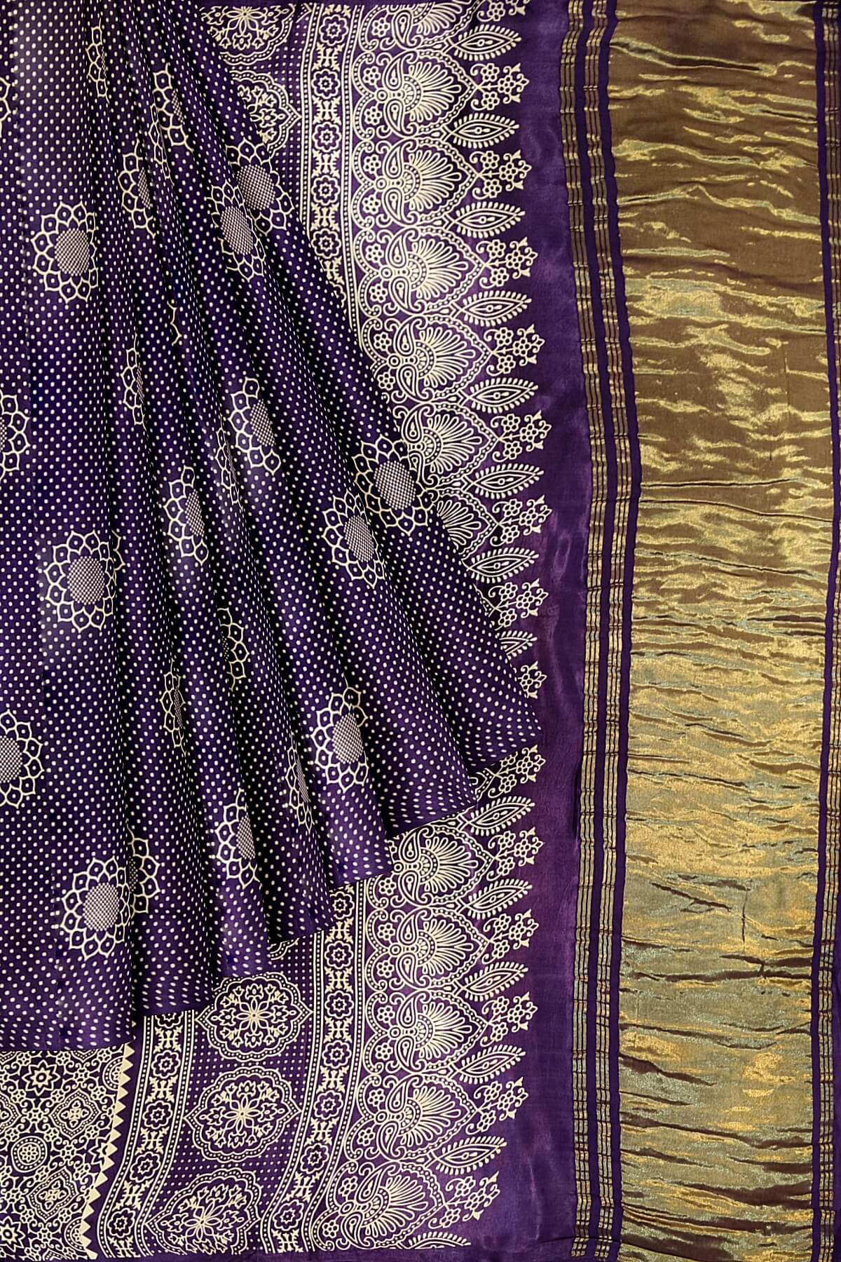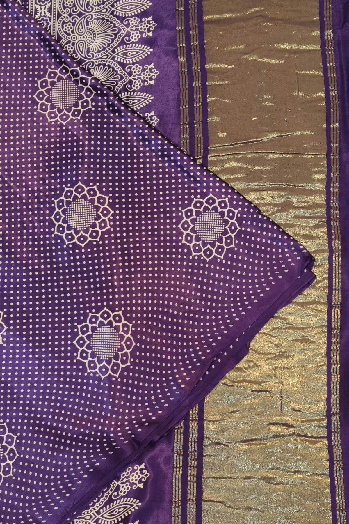 Description : Modal silk saree in floral pattern in purple with lagda patti (zari) pallu