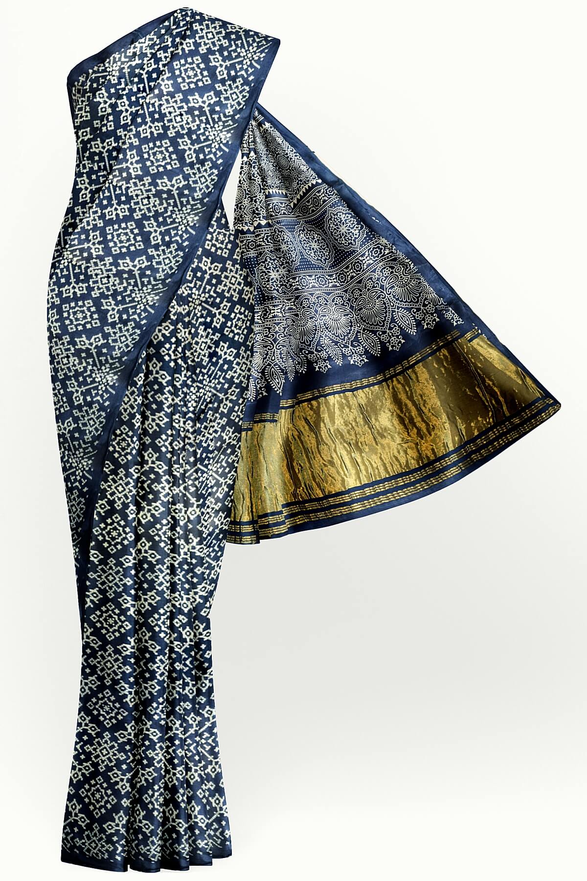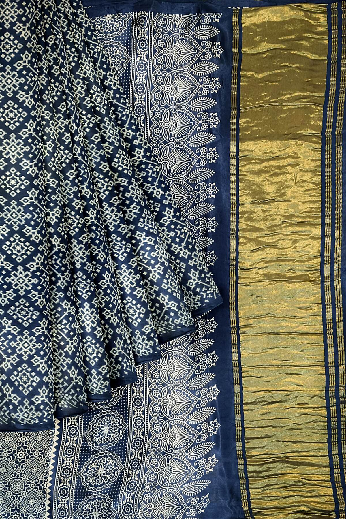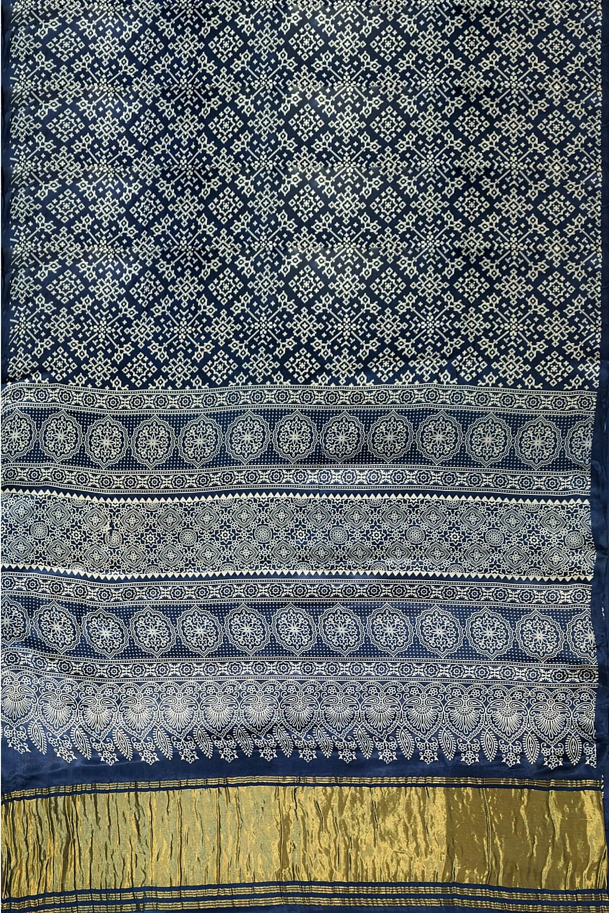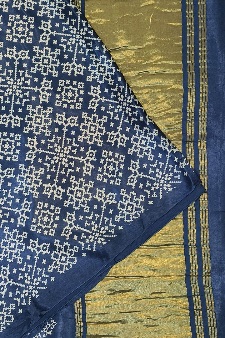 Description : Modal silk saree in rangoli pattern in cobalt blue with lagda patti (zari) pallu