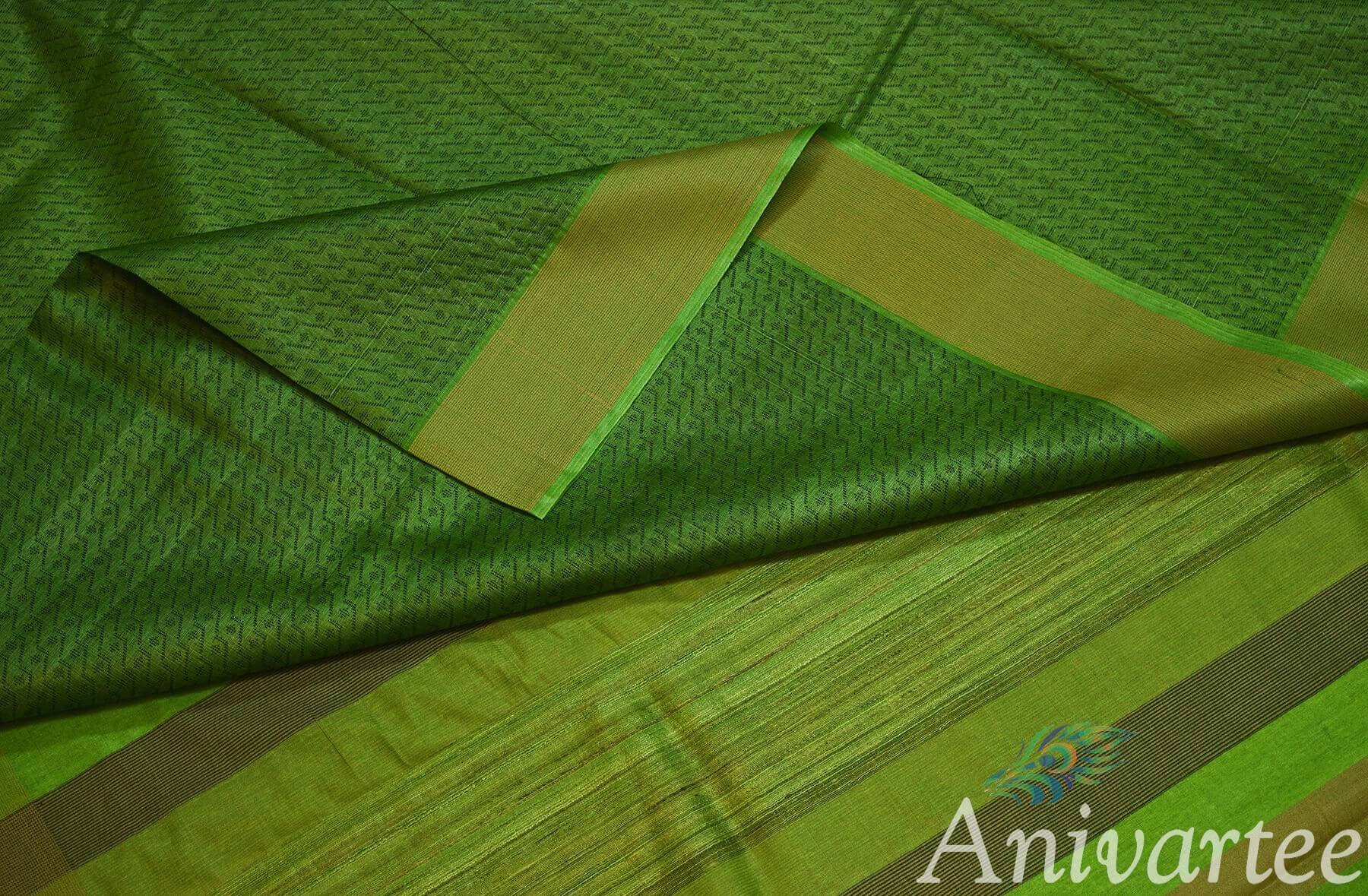 Description : Handloom desi tussar silk brocade saree in green with fine pattern on the body