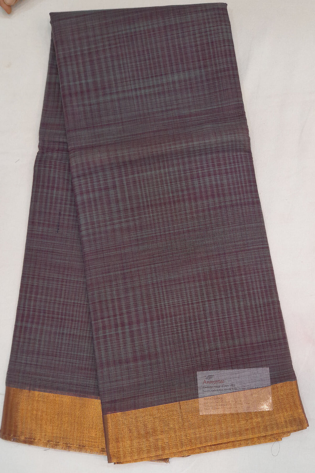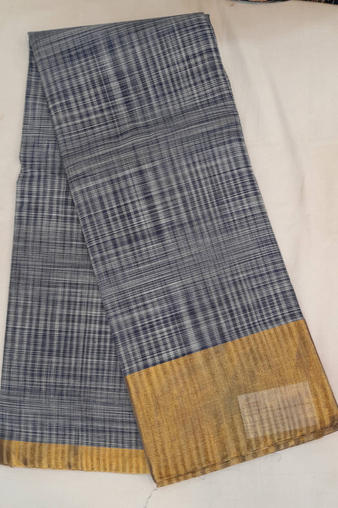 Handloom Uppada pure cotton saree in bluish grey with striped pallu