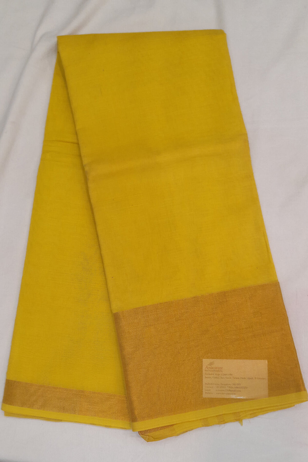 Handloom Uppada pure cotton saree in yellow with 6 inch border