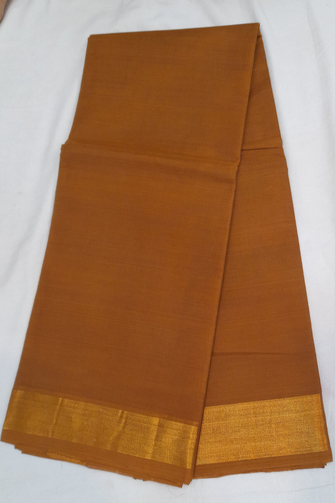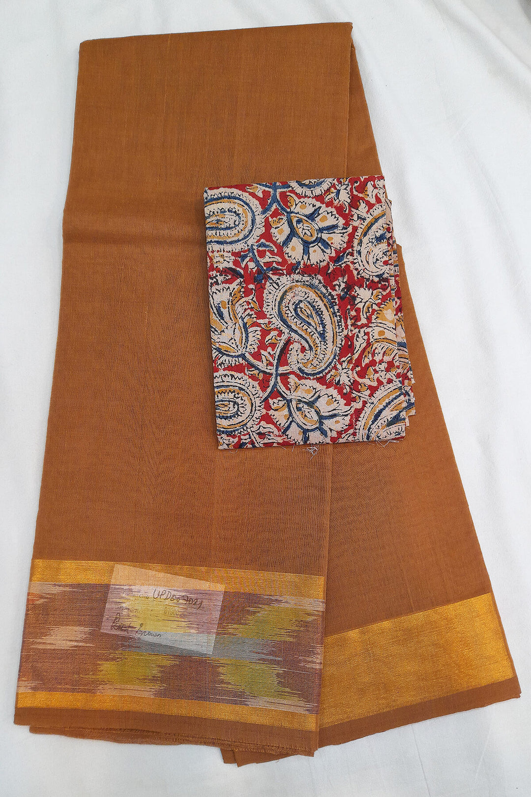 Handloom Uppada pure cotton saree in oak brown with 3 inch border without blouse