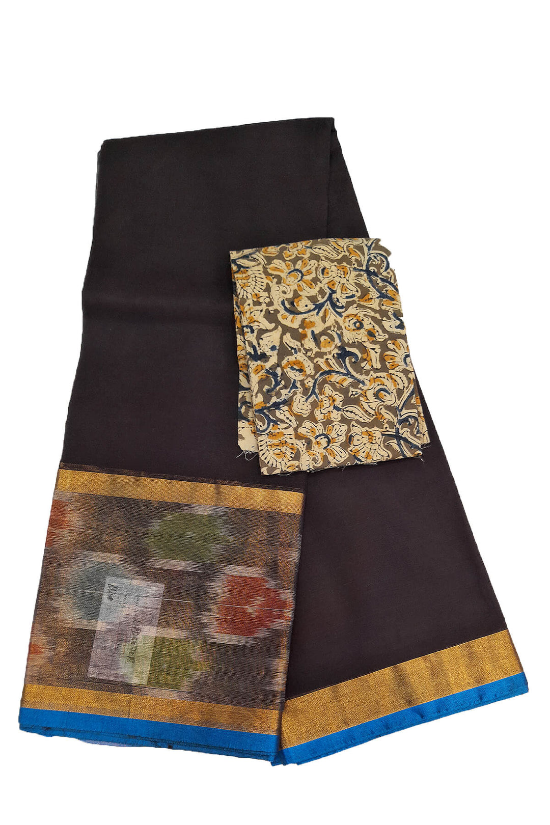 Handloom Uppada pure cotton saree in brown with ikat patterned border