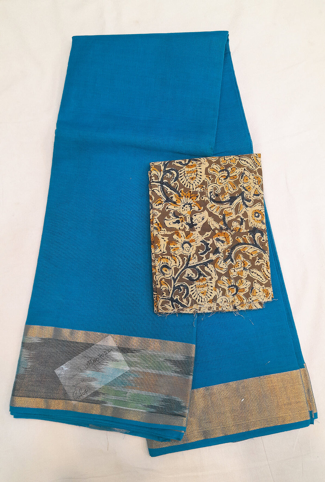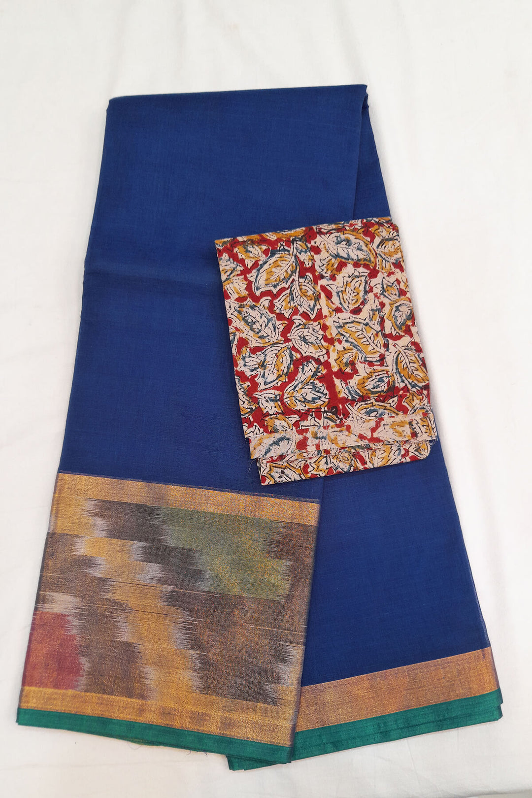 Handloom Uppada pure cotton saree in copper sulphate blue with ikat patterned border