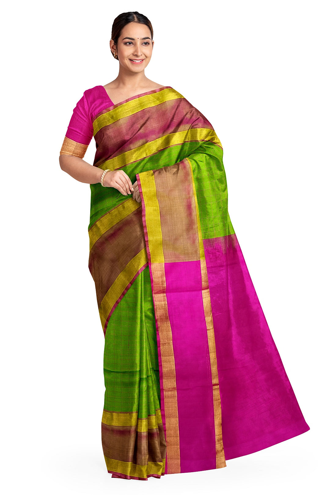 Handloom Uppada pure silk saree in checks in green