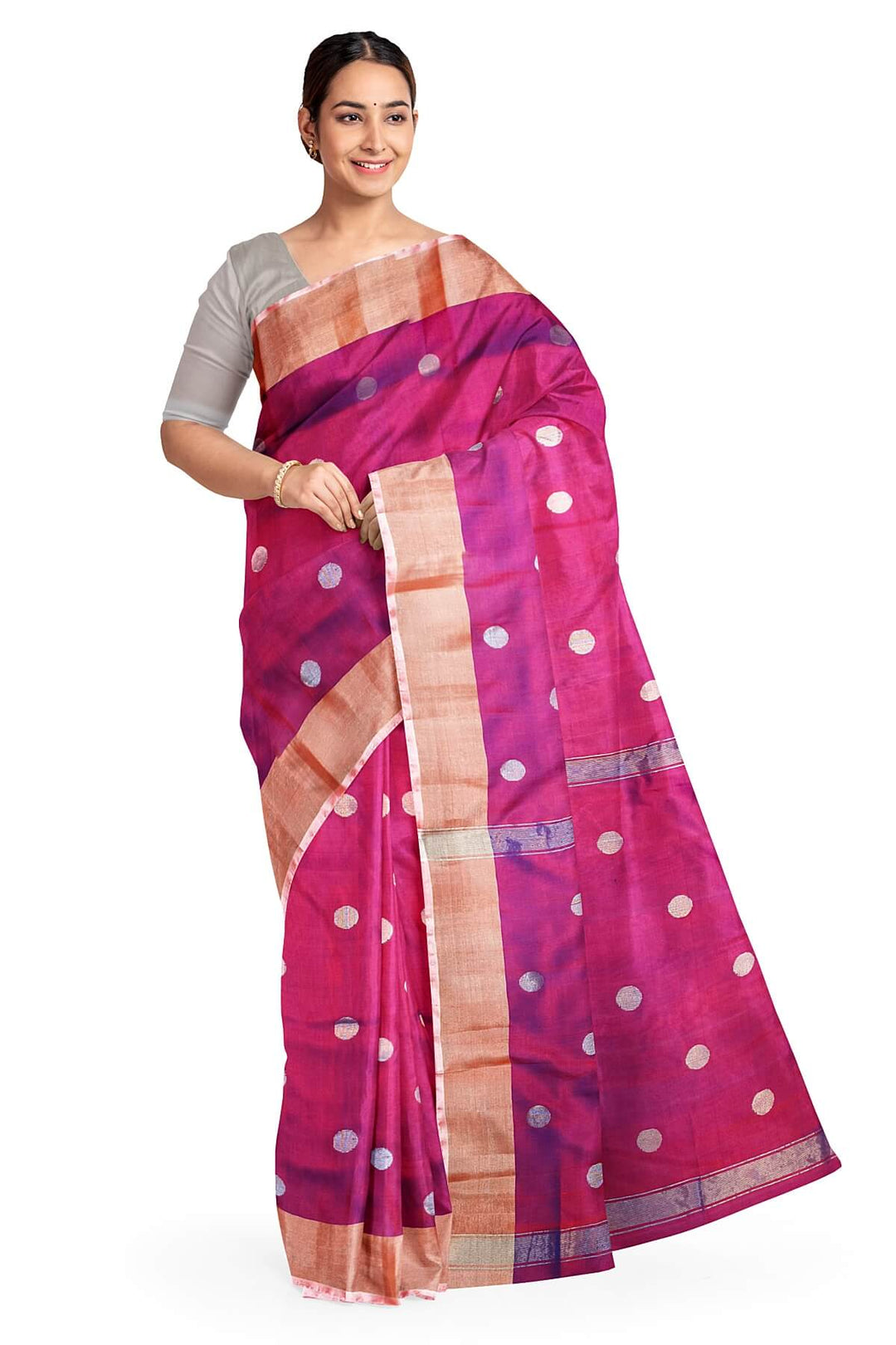 Handwoven Uppada pure silk saree in magenta with round motifs