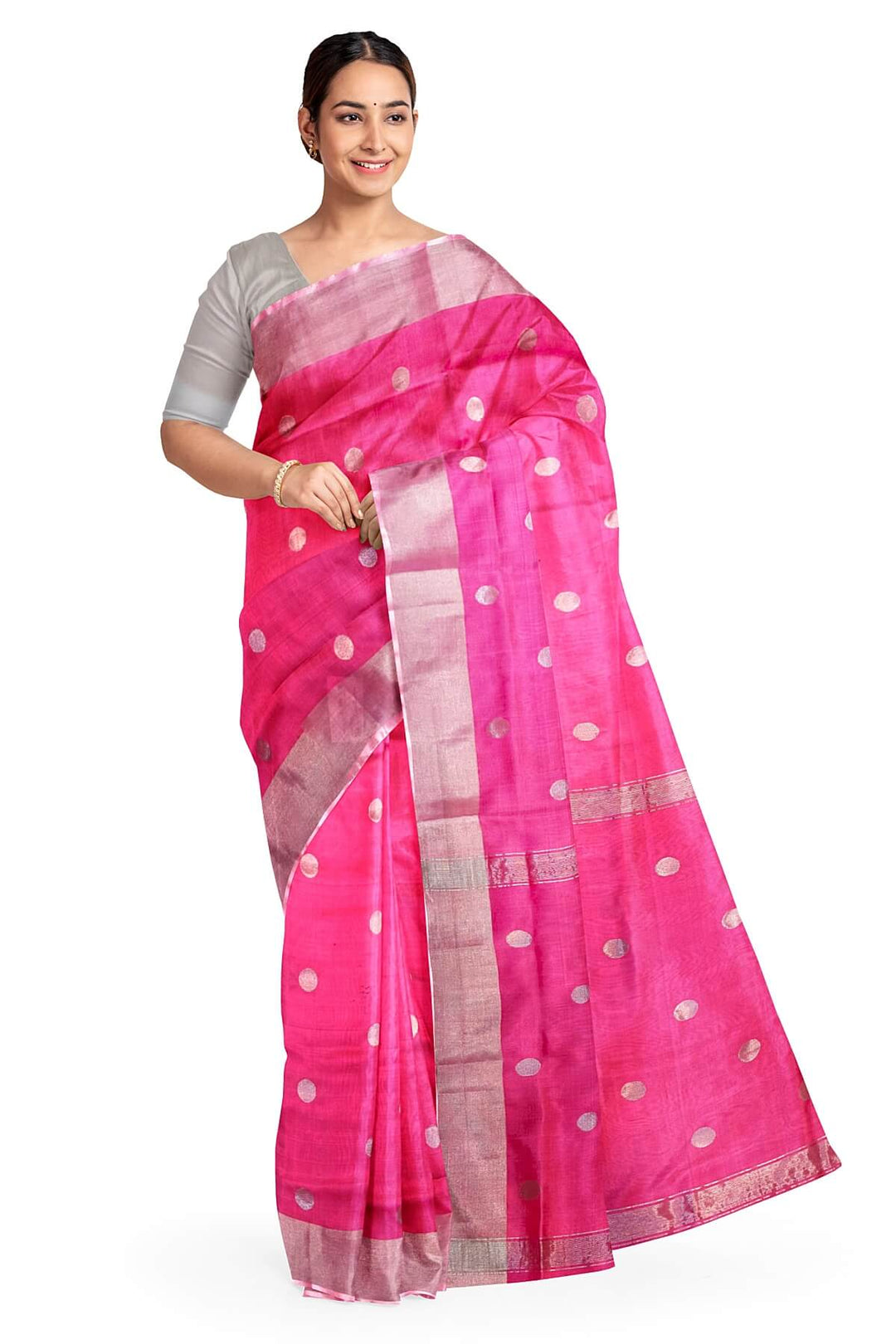 Handwoven Uppada pure silk saree in pink with round motifs