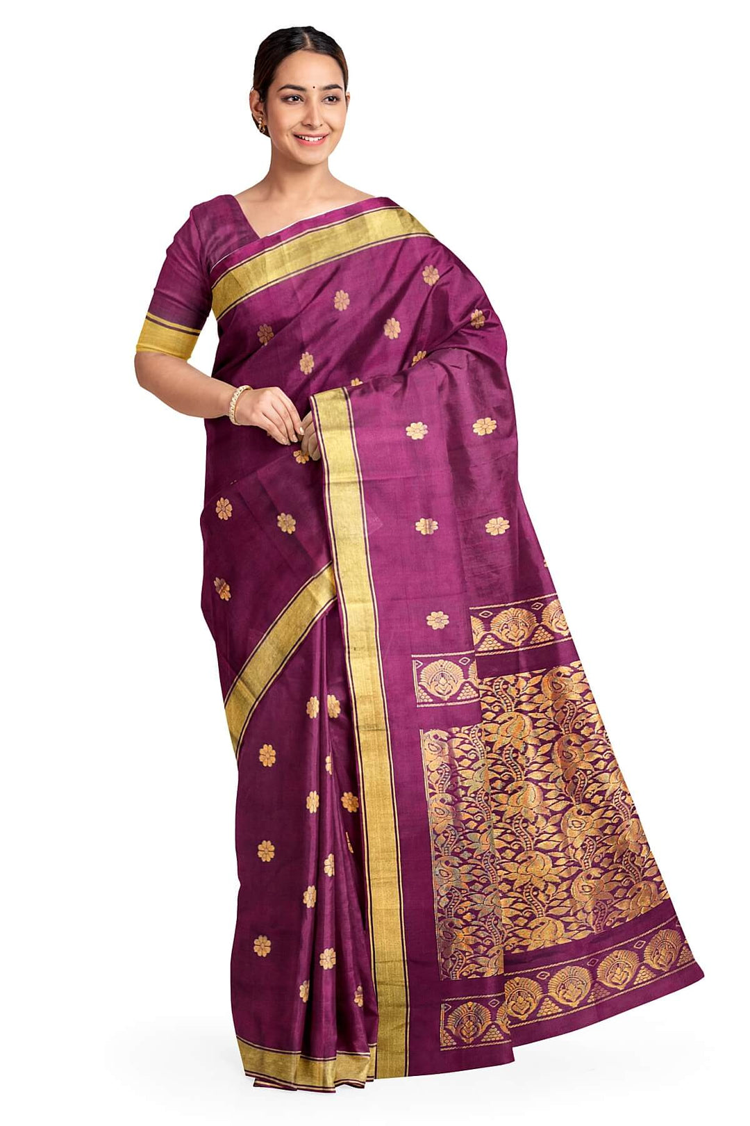 Handloom Uppada pure silk saree in wine with rich pallu and a small border