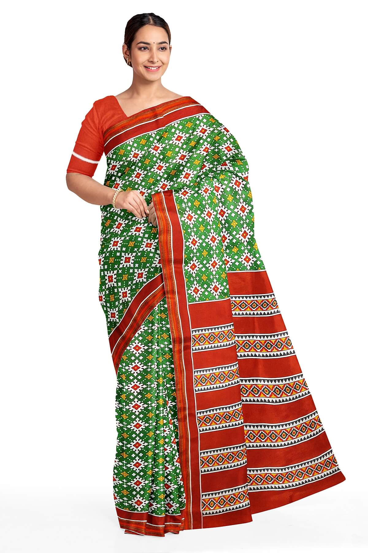 Description: TWILL WEAVE silk saree in green in choktha bhat ( diamond ) pattern