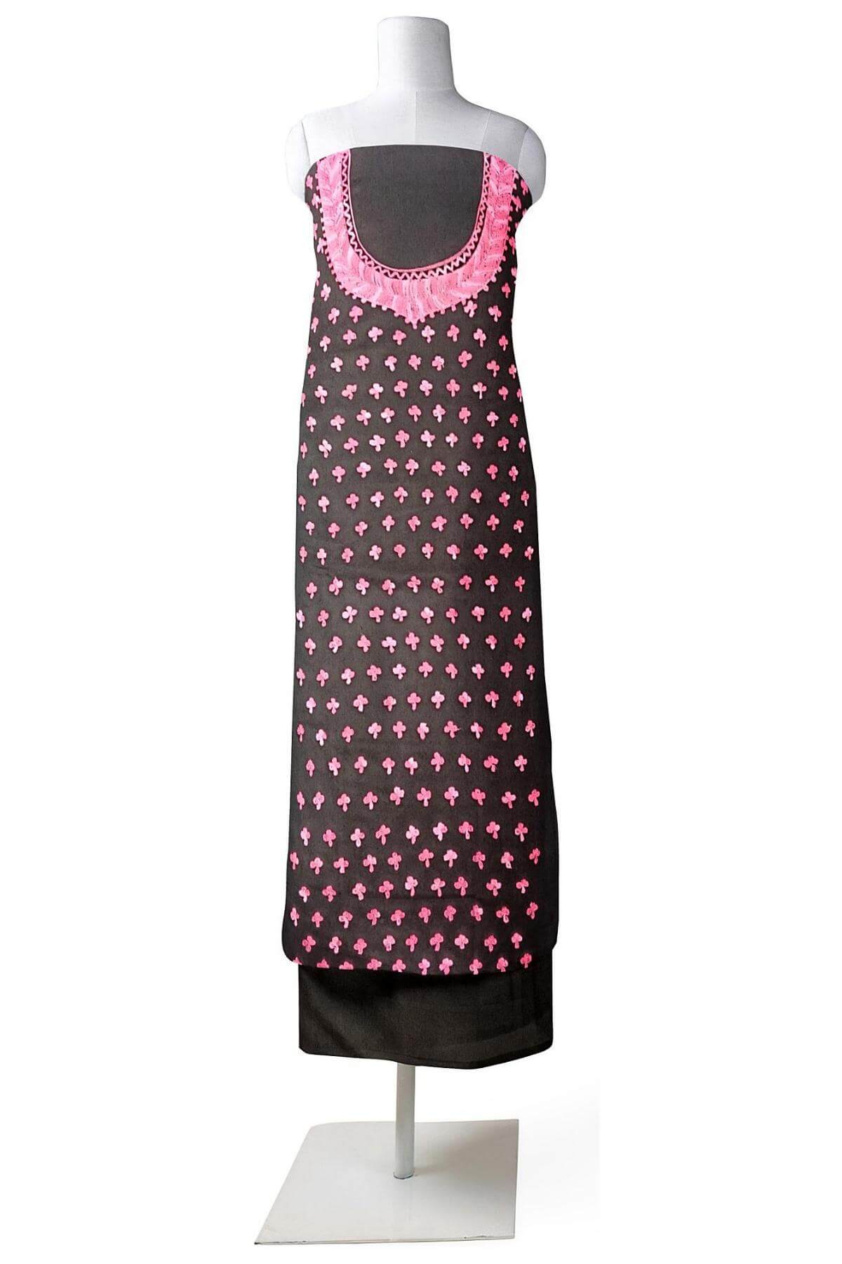 Description : Crepe silk salwar suit material with Kashmiri hand embroidery