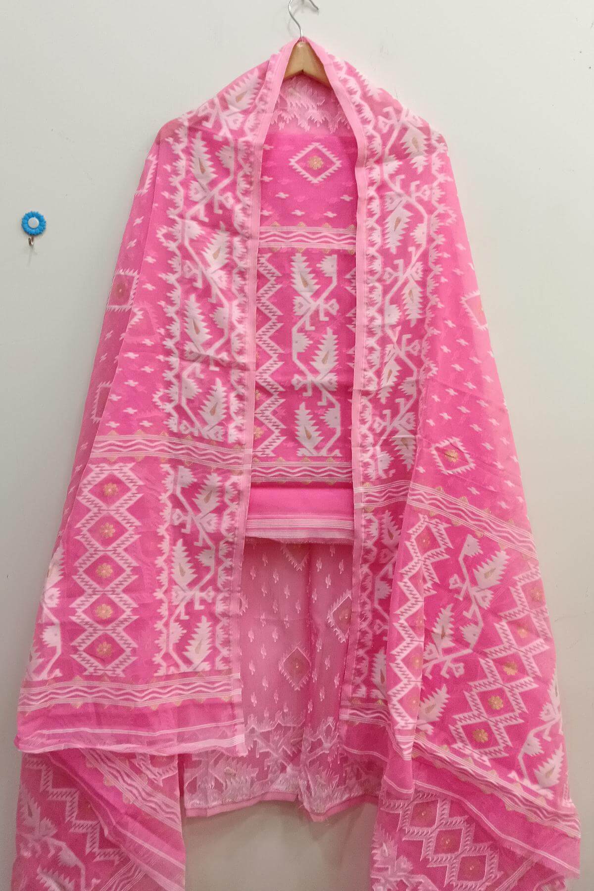 Description : Jamdani silk cotton salwar suit material in 2 piece in pink