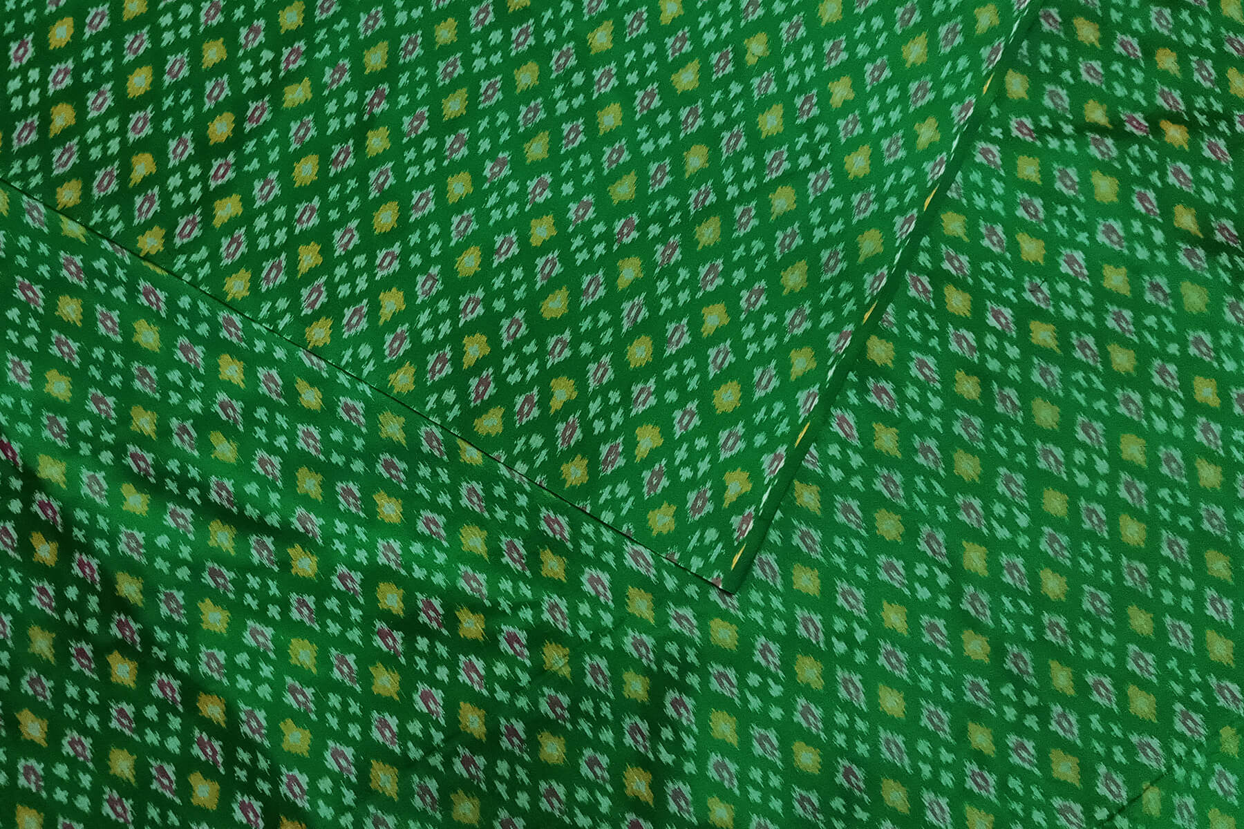 Handwoven Ikat pure silk fabric in green