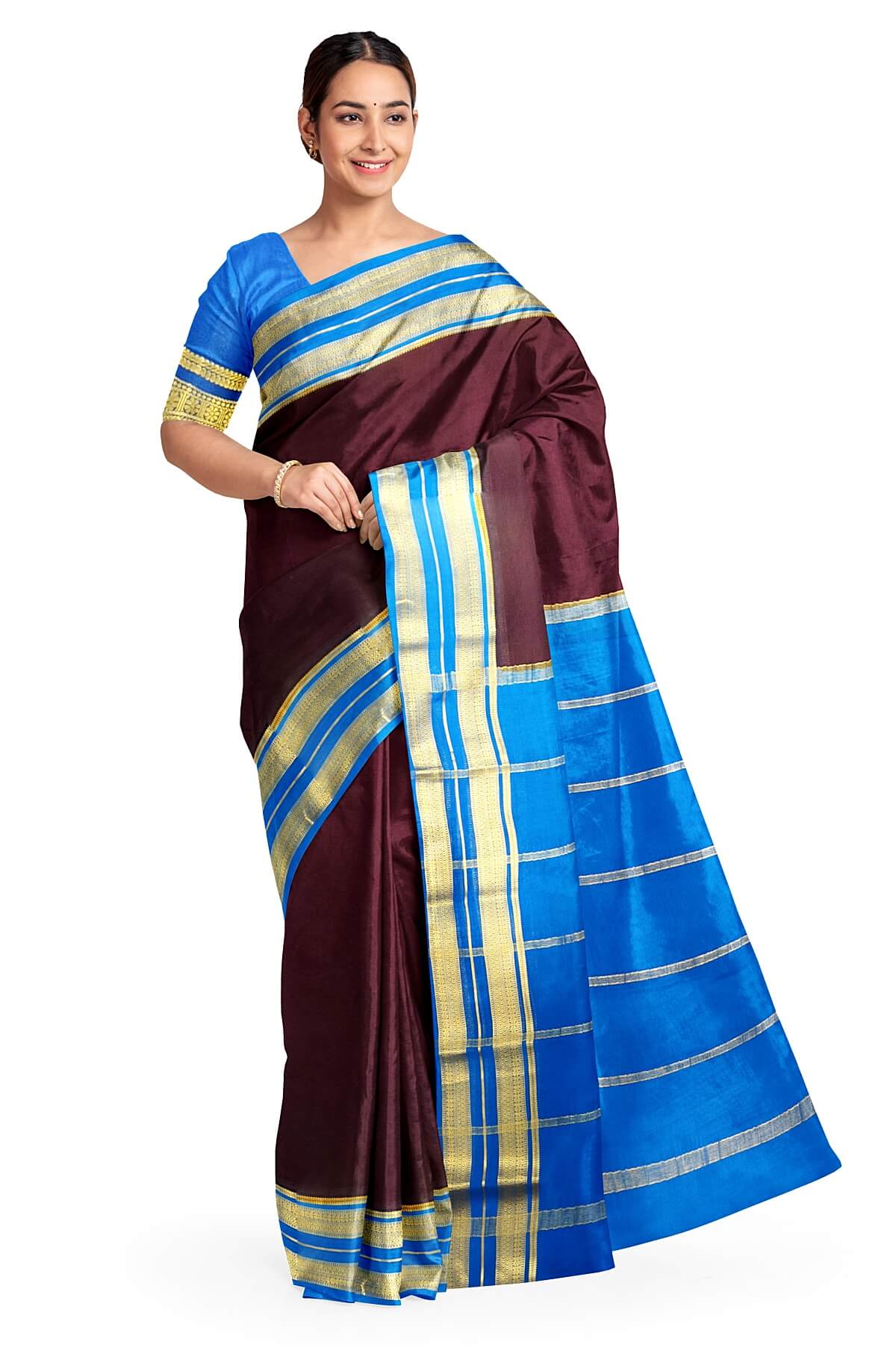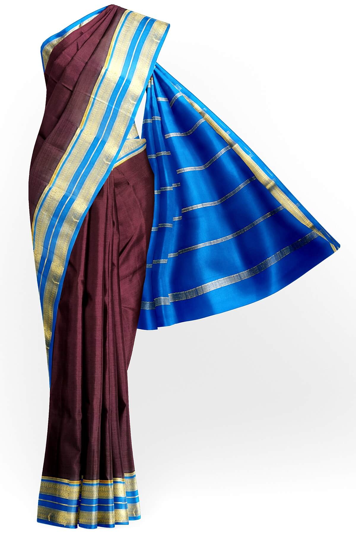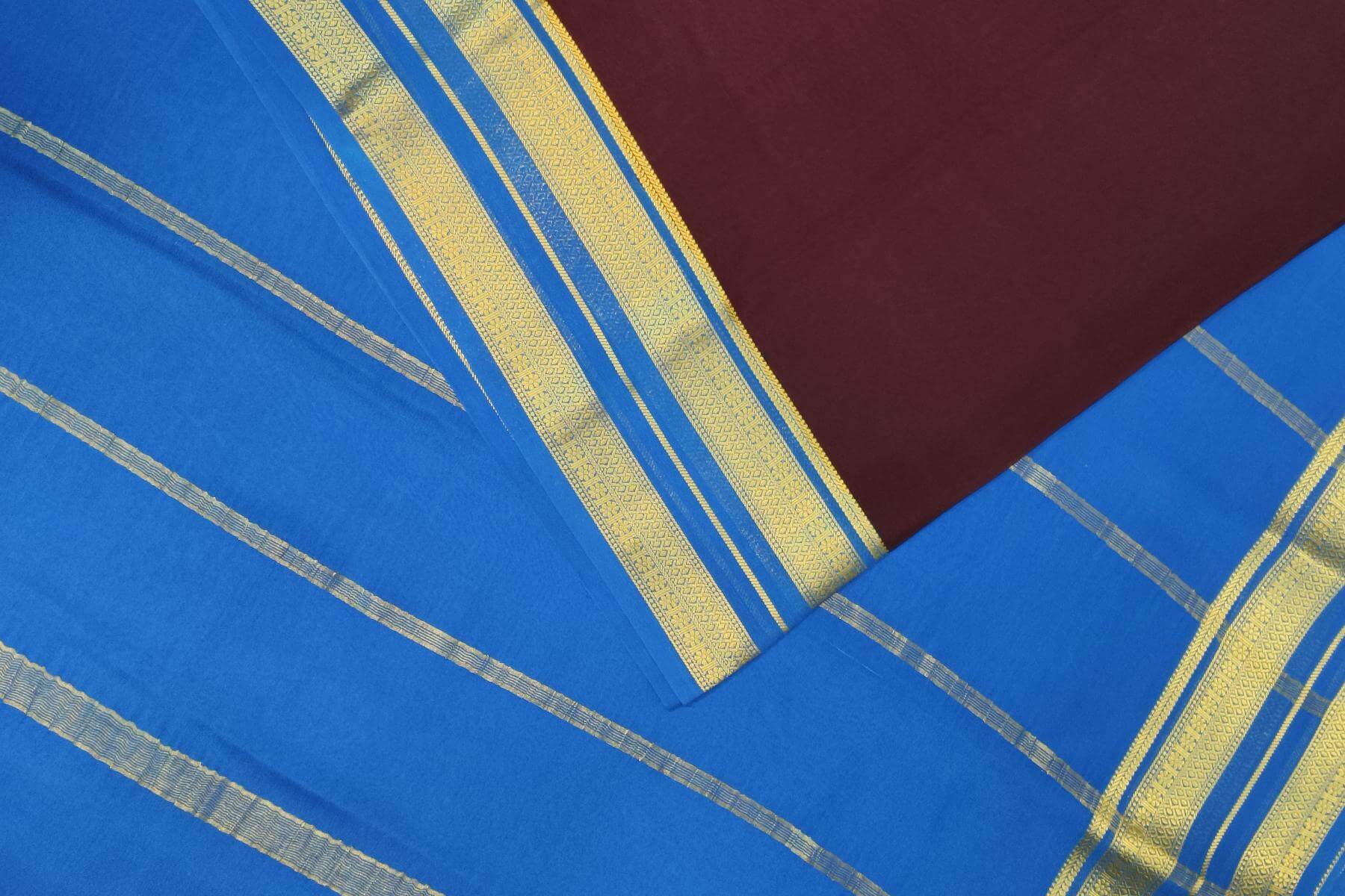 Description: Mysore crepe pure silk saree in wine with a contrast pallu