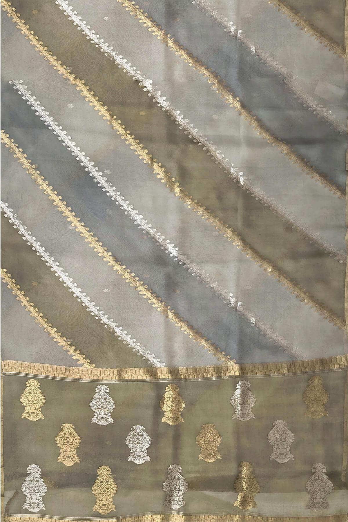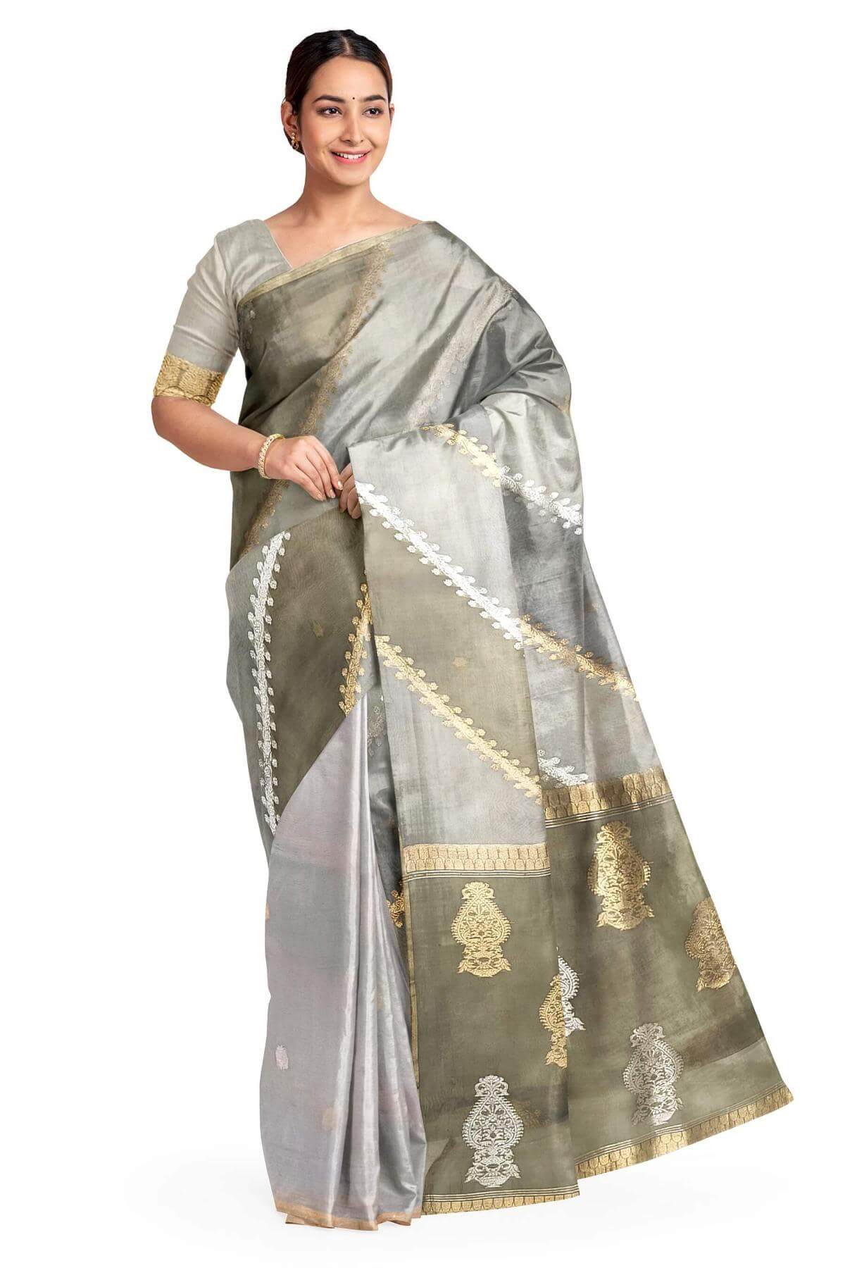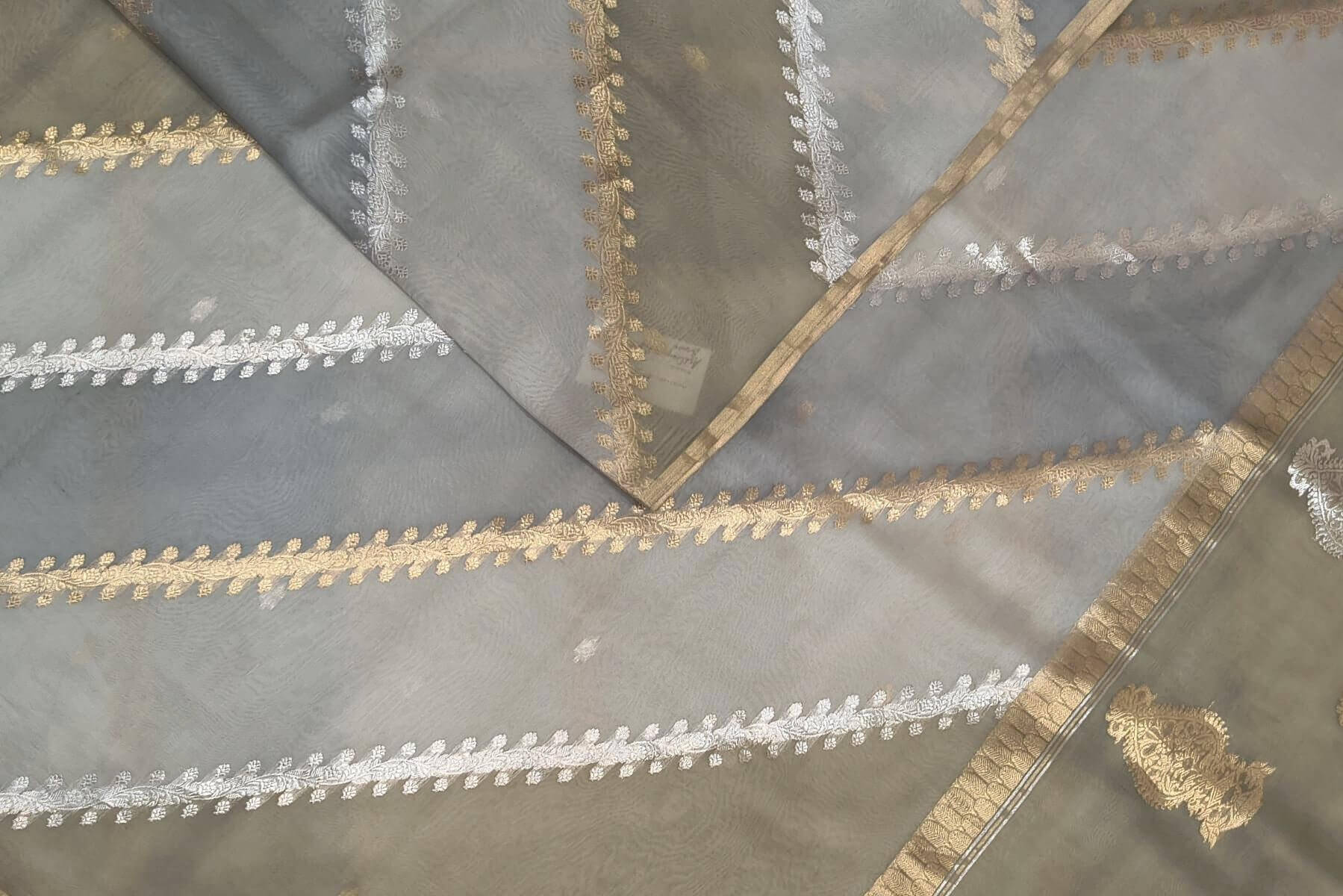 Description : Rangkat pure kora (organza)Banarasi silk saree in ash grey