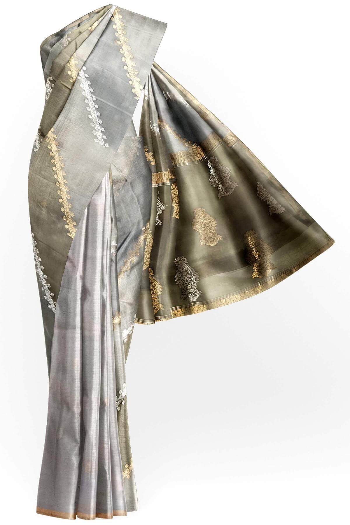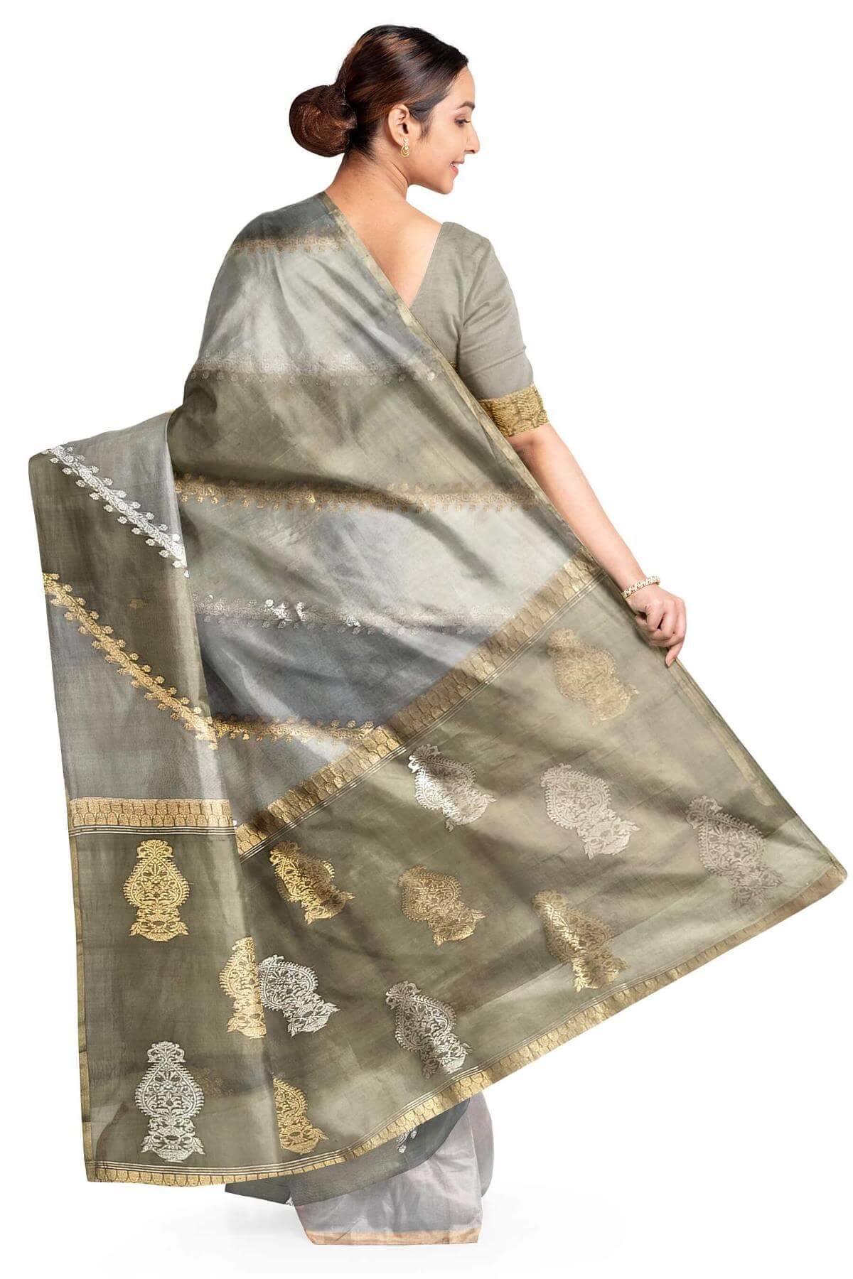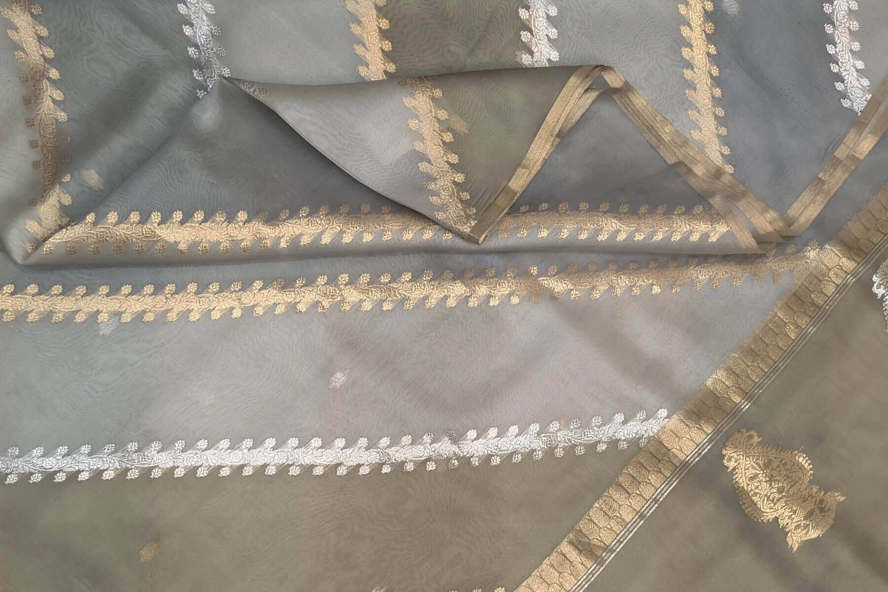 Description : Rangkat pure kora (organza)Banarasi silk saree in ash grey